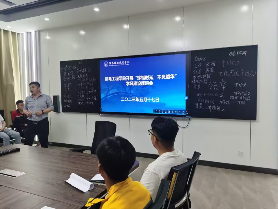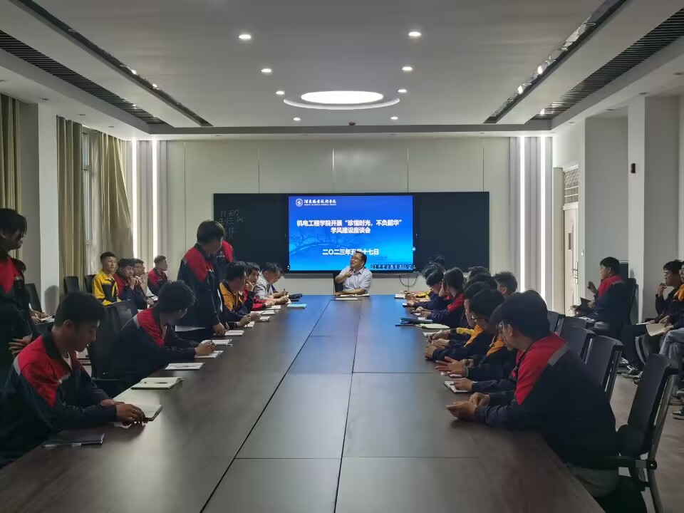 学风是学校精神的集中体现,是学校立校之本、发展之魂。为进一步落实“三抓三促”的要求、巩固校园文明建设的成果,加强学院学风建设,培养学生良好学习习惯,创造严谨、进取、和谐的学习氛围,5月17日晚机电工程学院结合学院实际情况召开“珍惜时光,不负韶华”学风建设座谈会。会议由副院赵国鑫主持、学院党支部书记、院长裴兴林参加了座谈会。