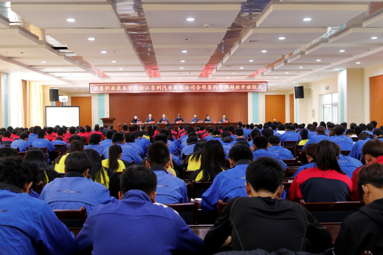 2017年11月18日,浙江吉利汽车有限公司校企合作订单培养签约暨博越班开班仪式在酒泉职业技术学院图书馆四楼会议室隆重举行。此次签约合作实现了校企资源的有机结合,校企双方将以工学交替的“教学工厂”和“现场案例分析”的实践教学模式,强化训练学生的实际操作能力,融入企业文化、企业规章制度等教育教学内容,助推学生全面成才,为培养社会发展需要的高技能人才提供了新的契机,也标志着学院服务社会能力进一步提升。