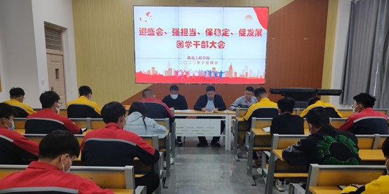10月4日下午,机电工程学院在格物楼505阶梯教室召开“迎盛会、强担当、保稳定、促发展”团学干部大会。副院长赵国鑫、学生工作办公室老师、团委学生会全体学生干部、各班级班长团支书参加了会议。
