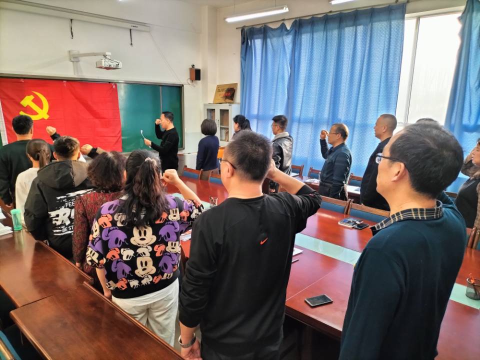 怀着对党的尊敬,宣誓仪式正式开始。组织委员王玉明首先宣读了预备党员名单,并带领预备党员及全体党员进行宣誓。大家面朝鲜艳的党旗,举起右手,顿时,激昂的宣誓声回荡在会议室,这庄严的一刻,烙印在每一位党员心中。