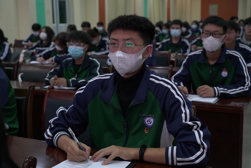 他强调全体教师和青年学生在以后的工作、学习中要践行党的二十大精神,青年学子要做有理想、敢担当、能吃苦、肯奋斗的新时代好青年;教师要做有理想信念、有道德情操、有扎实学识、有仁爱之心的好老师,不负青春,不负梦想,不负时代,不负人民,为学校 “双高”“创本”任务贡献力量,为把我国建设成为富强民主文明和谐美丽的社会主义现代化强国、实现中华民族伟大复兴的中国梦不懈奋斗。