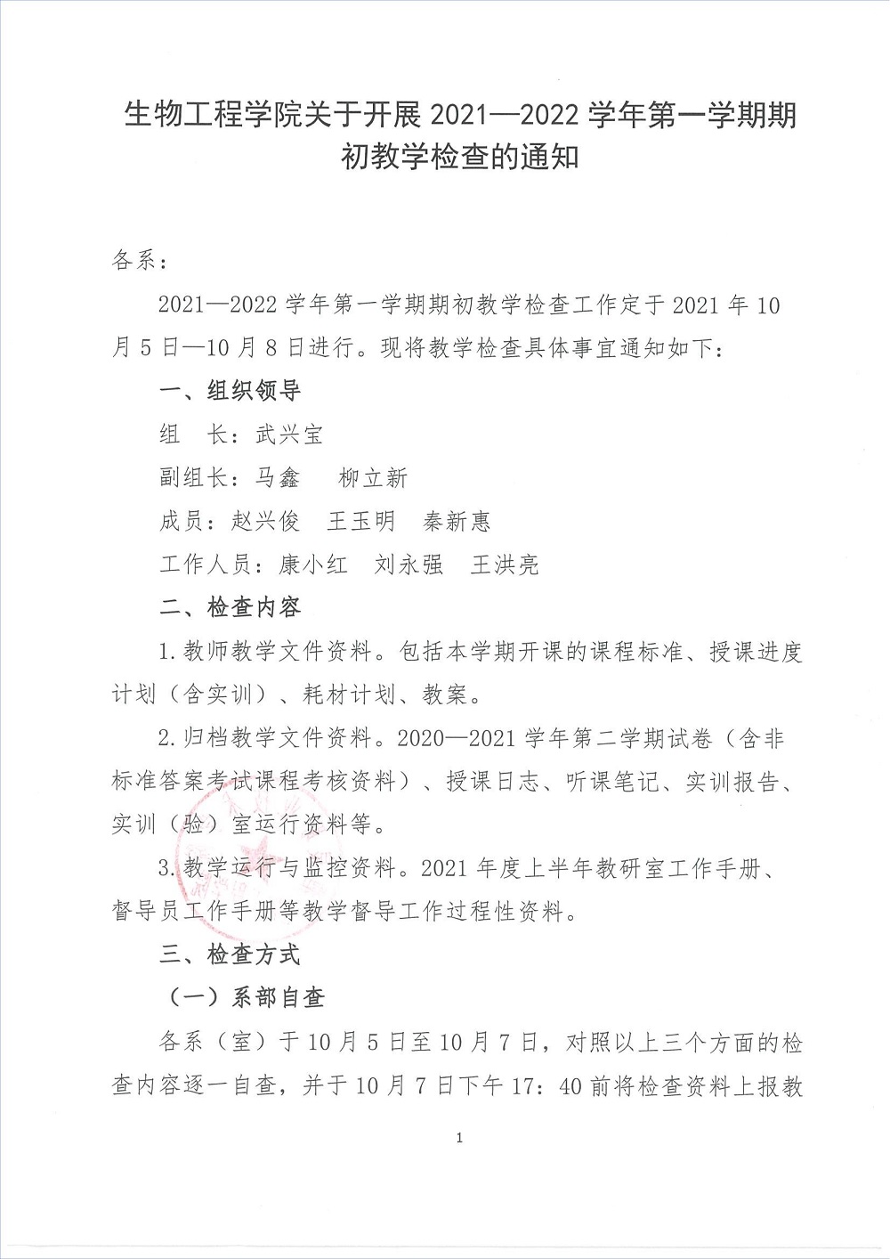 生物工程学院关于开展2021- 2022学年第一学期期初教学检查的通知