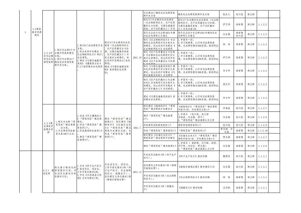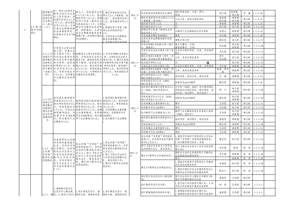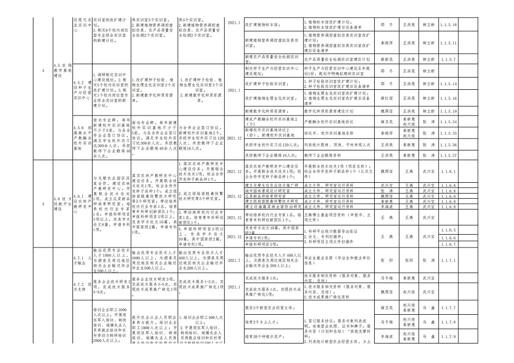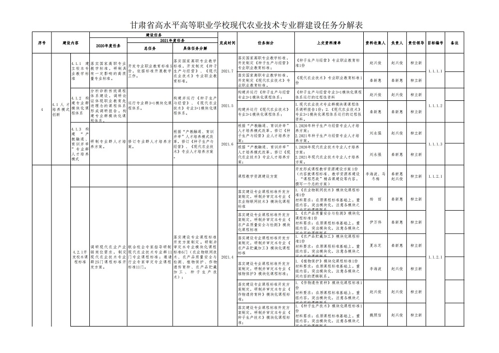 甘肃省高水平高等职业学校现代农业技术专业群建设任务分解表