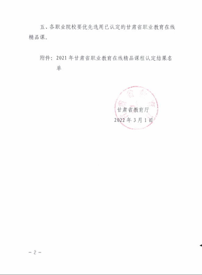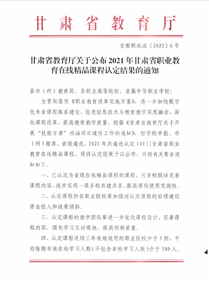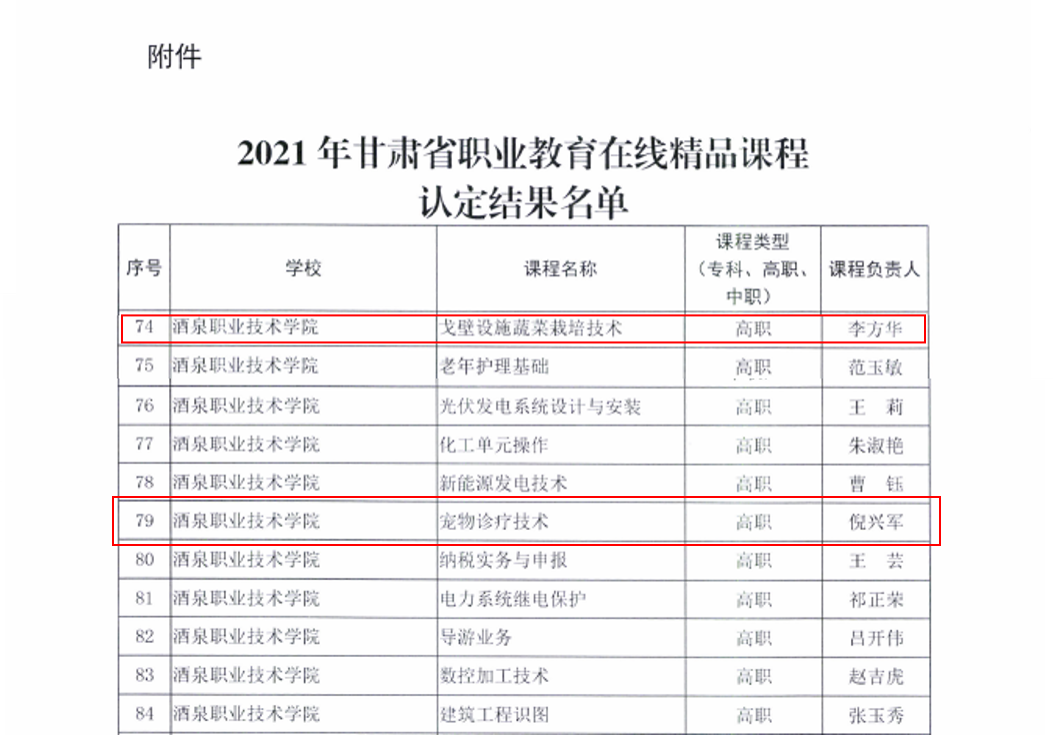 喜报—我院戈壁设施蔬菜技术等2门课程获评甘肃省职业教育在线精品课程