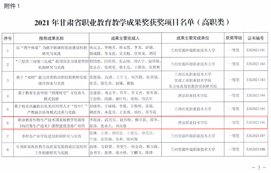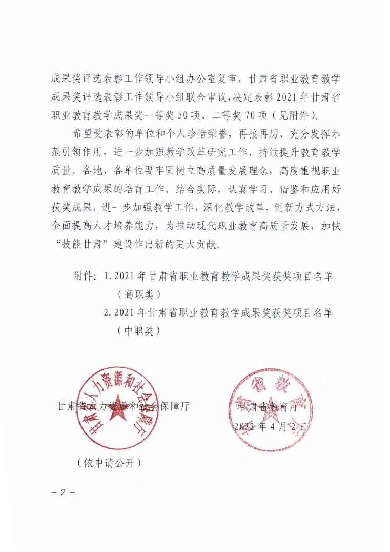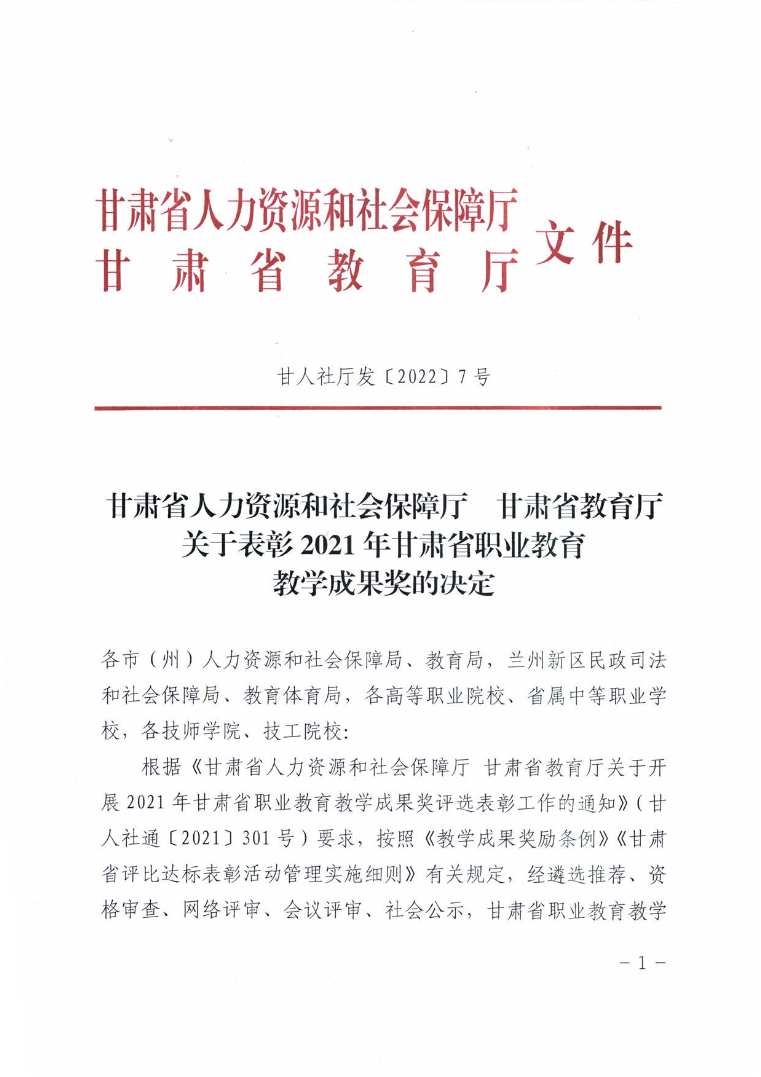 喜报-我院教师主持的教改项目获评甘肃省职业教育教学成果一等奖