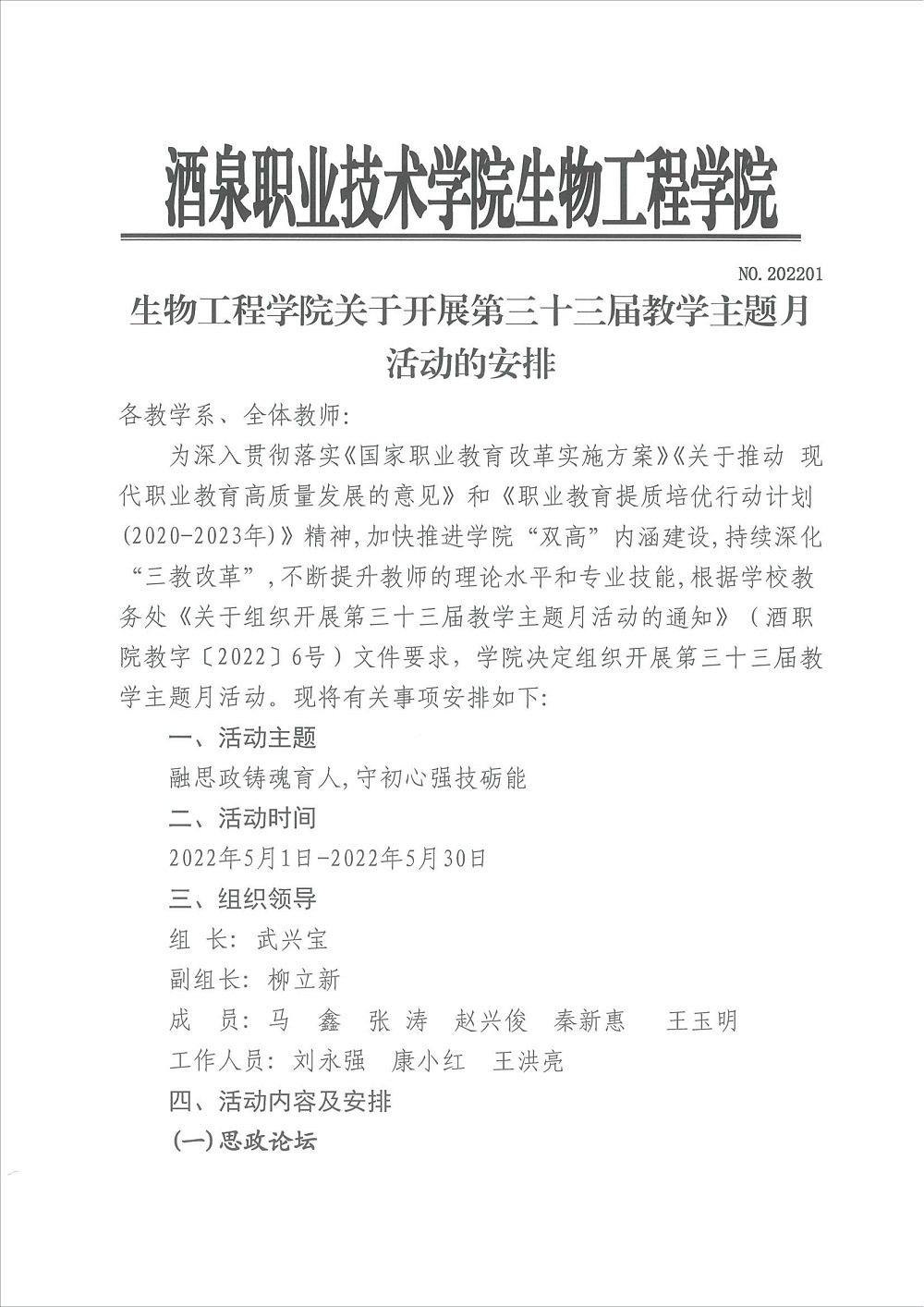 生物工程学院第33届教学主题月活动安排