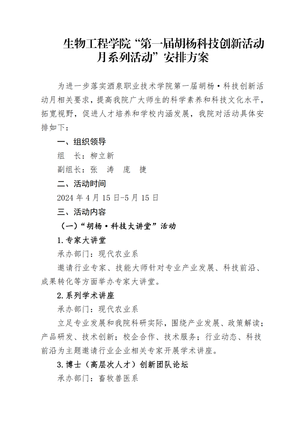 生物工程学院“第一届胡杨科技创新活动月系列活动”安排方案