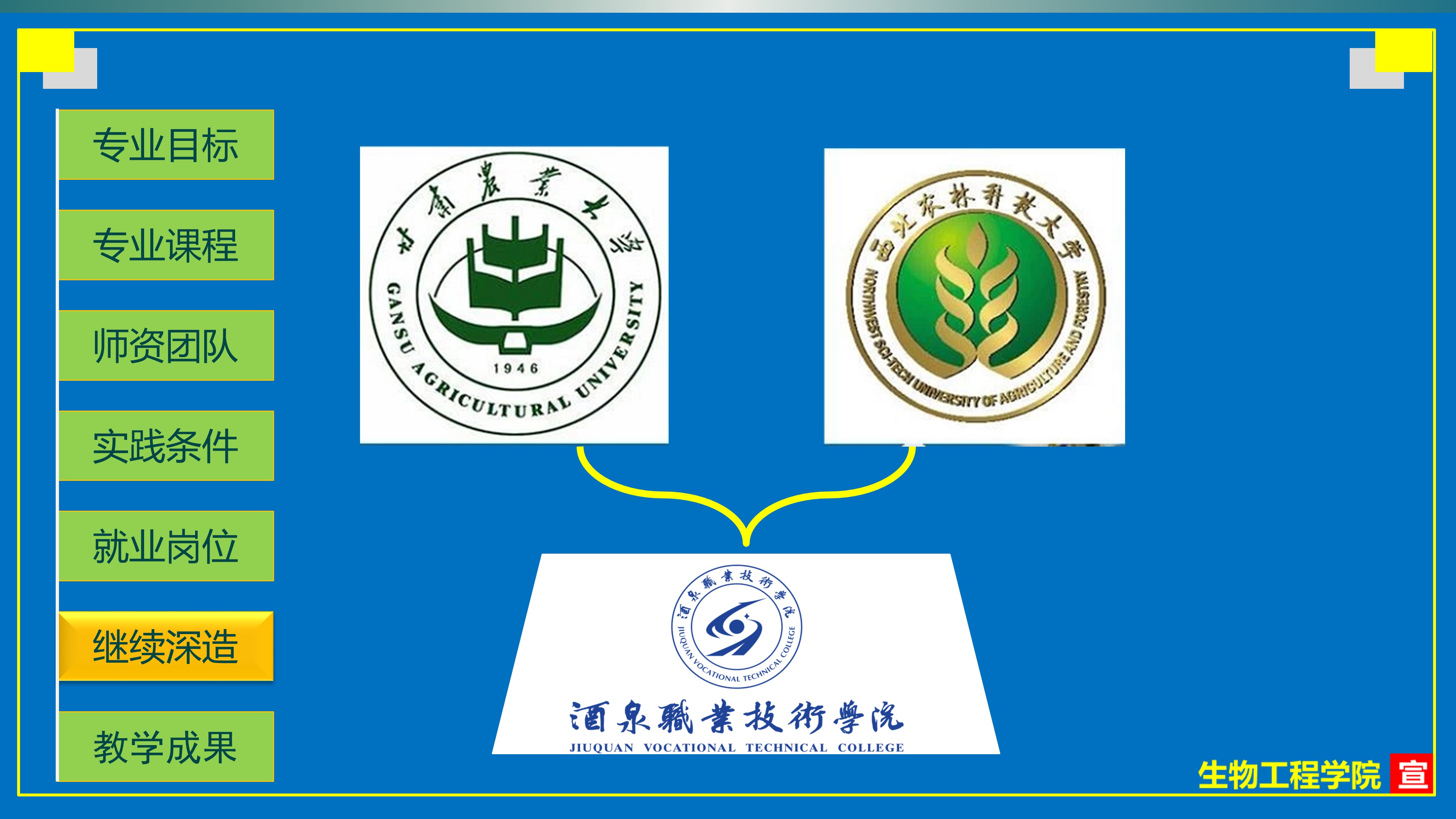 版权所有©酒泉职业技术大学生物工程学院 酒泉市肃州区解放路66号 | 邮编:735000