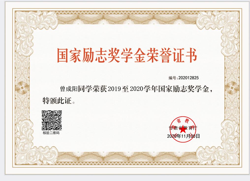 这次有幸能获得国家励志奖学金的机会,对我来说不仅是一种荣誉,更重要的是减轻了我在学习期间所面临的经济压力,也减轻了父母的负担,同时也在学习上激励我更加奋发进取。在以后的学习生活中,我将一如既往的遵守学校的规章制度,积极参加学校的各项活动,不断向党组织靠拢,为成为一名真正的中国共产党员而努力,努力学习科学文化知识,提高自身文化素质,做好各项工作,为同学服务。