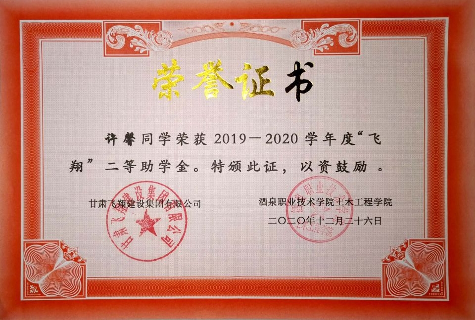 姓名:许馨 籍贯:甘肃张掖 专业:工程造价