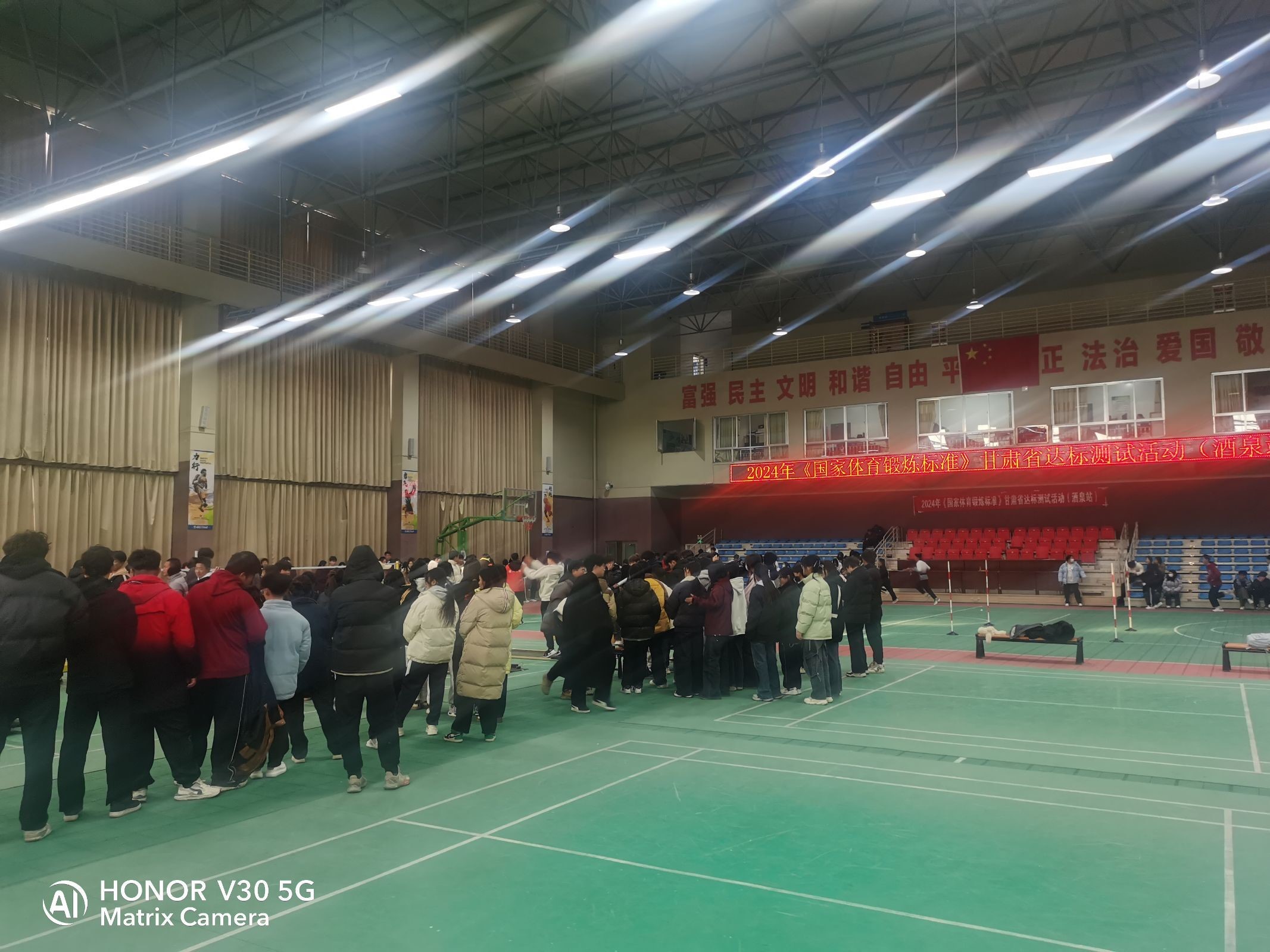 为积极推行国家体育总局、教育部、全国总工会《国家体育锻炼标准实施办法》,进一步推动国家体育锻炼标准的深入实施,全面贯彻落实全民健身计划(2021-2025年),促进健康中国建设,为预防疾病、提升体质与健康水平提供政策制定依据,促进全民健身与科学健身以及在教育中促进学生全面发展。12月18日,2024年《国家体育锻炼标准》甘肃省达标测试活动(酒泉站)在我校展开。