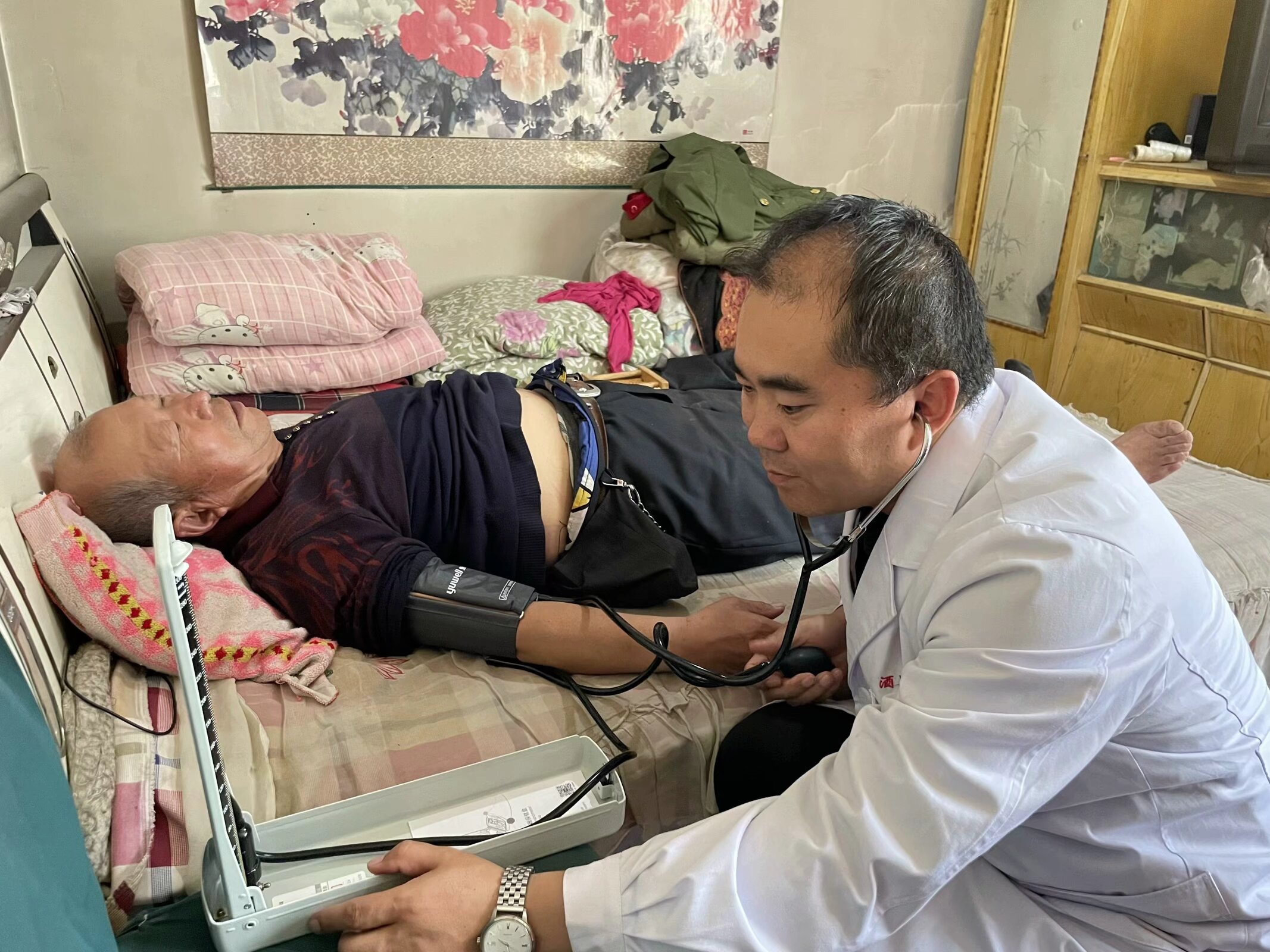 活动现场,大家分工明确、忙而有序。内科、外科专业教师为村民提供免费血压、血糖检测及专科问诊,耐心解答关于慢性病管理、日常保健等问题;后勤保障人员则负责现场秩序维护与健康资料发放。