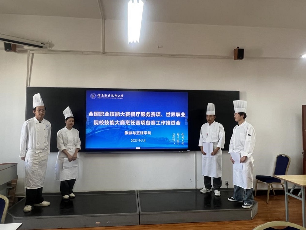 为高效推进全国职业技能大赛餐厅服务赛项及世界职业院校技能大赛烹饪赛项备赛工作,旅游与烹饪学院于2025年5月23日下午16:40在烹饪酒店实训中心三楼召开专题推进会。学院领导、酒店管理与数字化运营系及烹饪工艺与营养系全体教师参会,共商备赛策略,明确攻坚方向。