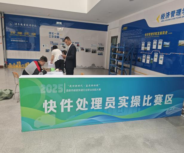 院系动态 > 正文5月28日,酒泉职业技术大学经世楼内气氛热烈,由酒泉市邮政管理局、市总工会、市人力资源社会保障局主办、经济管理学院承办的"建功新时代,奋进新征程"全市邮政快递行业职业技能大赛在此隆重开赛。来自全市5县1区的邮政、顺丰、极兔、京东等8家品牌企业的33名一线从业者齐聚一堂,在理论比拼与实操对决中展现新时代"小蜜蜂"的专业风采。