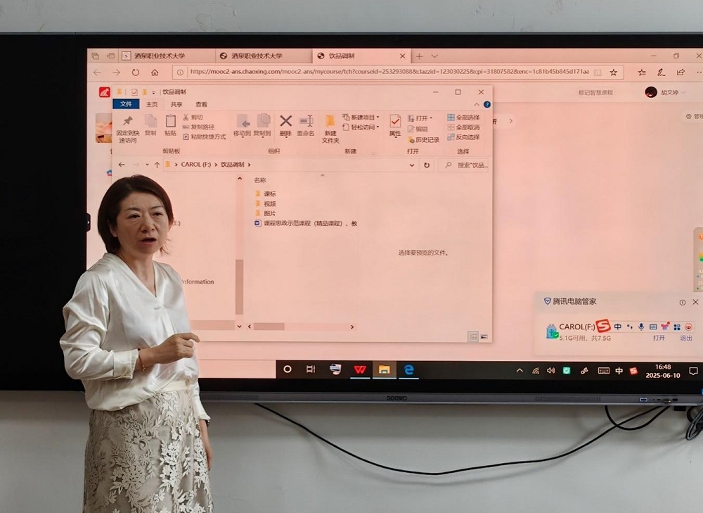 活动第二阶段,进行了课程思政在线课程建设成果交流。张雪婷老师在《旅游政策法规》课程思政示范课程中,结合课程特点,详细介绍了如何将思政元素有机融入到教学中,通过生动的案例和实际教学经验分享,展示了课程思政的有效实施路径,为其他教师提供了可操作性的思路。胡文婷老师在《饮品调制》展示中,分享了如何挖掘思政元素,将职业素养、工匠精神等融入到教学过程中,培养学生的综合能力和职业精神。