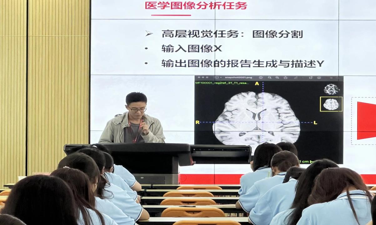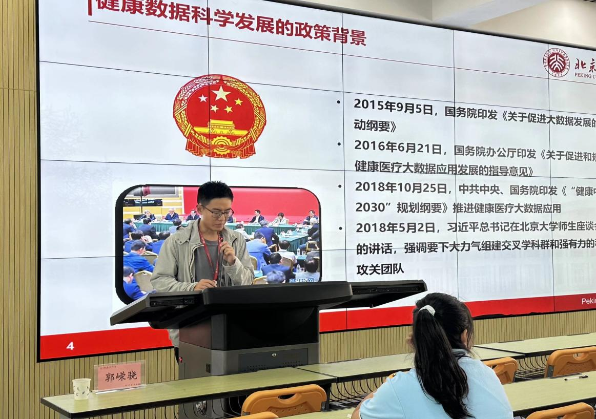 医学院内,北大 2023 级健康数据科学专业博士郭嵘骁,围绕专业定位、医学人工智能及自身科研方向,深入阐述前沿动态与成果,让同学们明晰了医学与数据科学交叉领域的前景,激发了对新兴学科的兴趣,为相关志向同学指明方向。