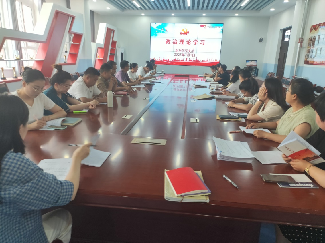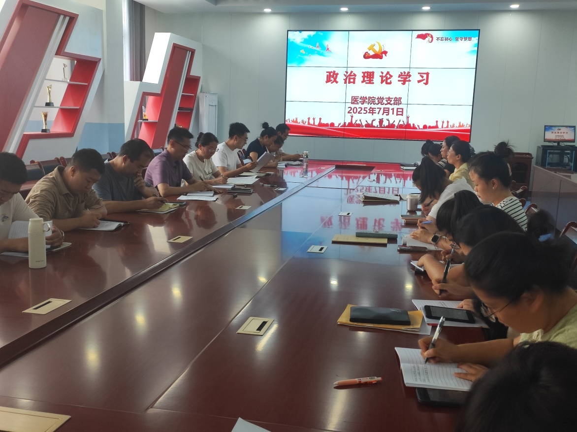 为迎接中国共产党成立104周年,深入学习贯彻习近平新时代中国特色社会主义思想,7月1日,医学院组织全体党员、教职工开展政治理论学习活动,引导广大教师筑牢信仰之基,将理论学习成果转化为推动医学事业发展的强大动力。
