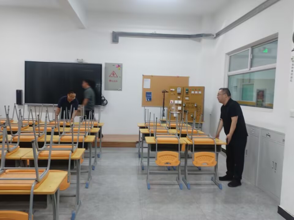 本次检查聚焦重点区域、重点设备,深入排查安全隐患。在格物楼教学区域,检查人员对用电、用水设备安全、消防设施完好性、门窗锁闭情况等进行了严格的安全检查,对发现的问题现场记录并督促立即整改,严防漏电、漏水、消防通道堵塞、门窗损坏等安全隐患。同时,对各教学实训室的卫生状况进行检查和现场整改,确保地面整洁、黑板干净、桌椅摆放有序。