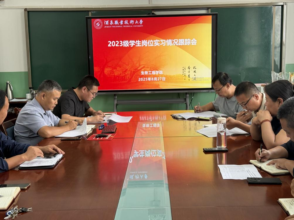 为全面掌握 2023 级学生岗位实习进展,及时解决实习过程中出现的问题,强化实习管理与安全保障,8月27日下午,生物工程学院在逸夫楼315会议室,组织召开 2023 级学生岗位实习情况跟踪会。学院领导班子、生物技术系及畜牧兽医系全体教师参会,会议由学院党支部书记、院长张涛主持。