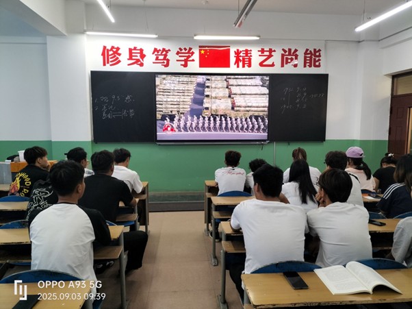 9月3日9:00,化工学院组织全体无课师生,在逸夫报告厅和教室集中观看纪念中国人民抗日战争暨世界反法西斯战争胜利80周年阅兵仪式。