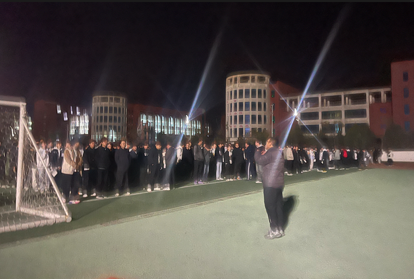 随后,广播再次发布“主震结束,立即疏散”的指令,在各楼层疏导员的指引下,全体学生按照既定疏散路线,快速、有序地疏散至悦健体育场集合地点。各班负责人协同学生会工作人员高效完成了人员清点与统计。