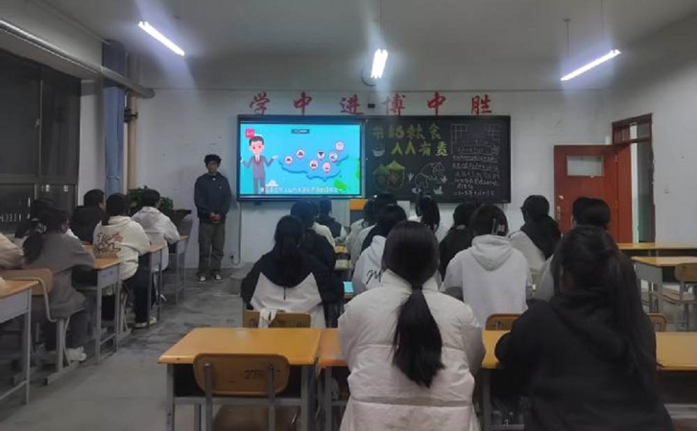 活动伊始,各团支部主讲人以“粮食安全的国家战略意义”为核心展开专题分享。他们结合我国粮食生产现状、部分地区粮食短缺案例,生动阐释“粮食安全是民生福祉的基本保障、社会稳定的压舱石”,更用“每一粒米藏着土地的馈赠,每一口粮连着万家的安稳”的鲜活表达,引导同学们从“餐桌浪费”的日常场景切入,思考粮食背后的耕耘成本与家国责任,从思想根源上筑牢“珍惜粮食、不负耕耘”的认知防线。