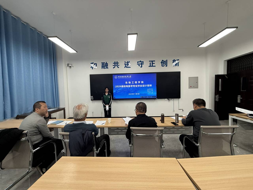 毕业论文是专业人才培养的综合性实践教学环节。生物工程学院2026届动物医学专业学生,结合专业岗位实习内容,在老师的指导下从起草、修改到审定,历经三个月完成了撰写任务。11月6日,动物医学专业的94名毕业生,弘毅楼A304、306、308分三组进行了毕业论文答辩,畜牧兽医系全体教师、畜牧兽医总站与企业兼职教师参加评审。