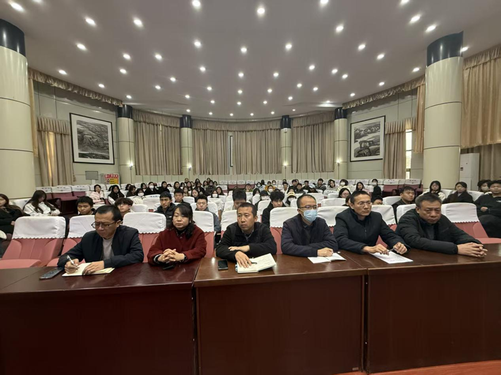 为进一步深化高技能人才培养,强化学生实践教学环节,保障岗位实习工作有序推进。2025年11月7日下午,生物工程学院在逸夫报告厅组织召开2023级动物医学专业岗位实习动员大会。学院领导、畜牧兽医系全体教师及2023级动物医学1、2班94名学生参加会议。会议由畜牧兽医系主任张建明主持。