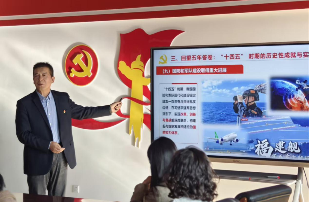 为深入学习贯彻习近平新时代中国特色社会主义思想,扎实推进2025年党员党性教育工作,全面落实党的二十届四中全会精神,2025年11月3日,马克思主义学院党支部书记聂峰同志以“在接续奋斗中谱写中国式现代化新篇章——深入贯彻党的二十届四中全会精神”为题,讲授专题党课,学院全体党员、教师参加学习。