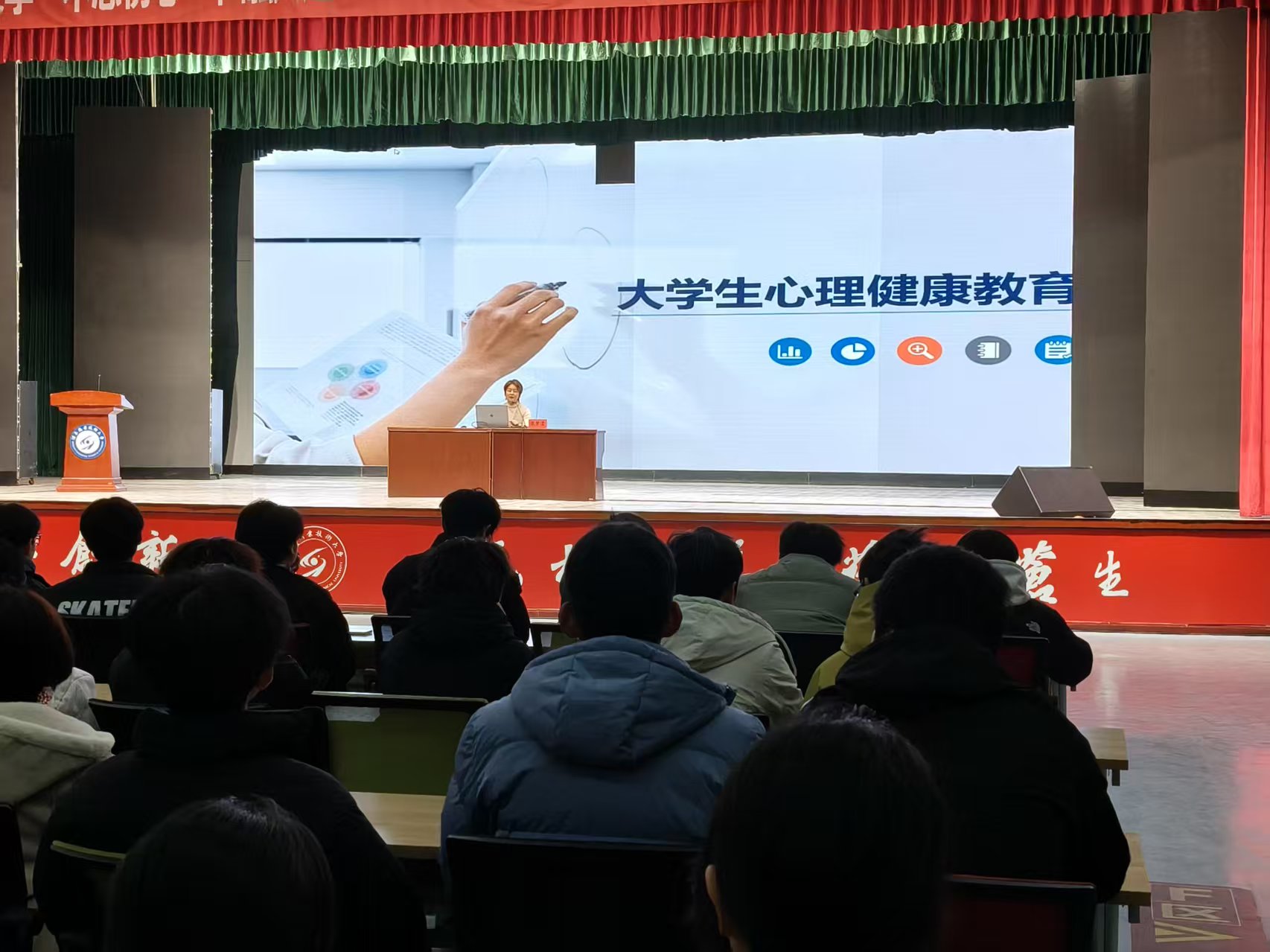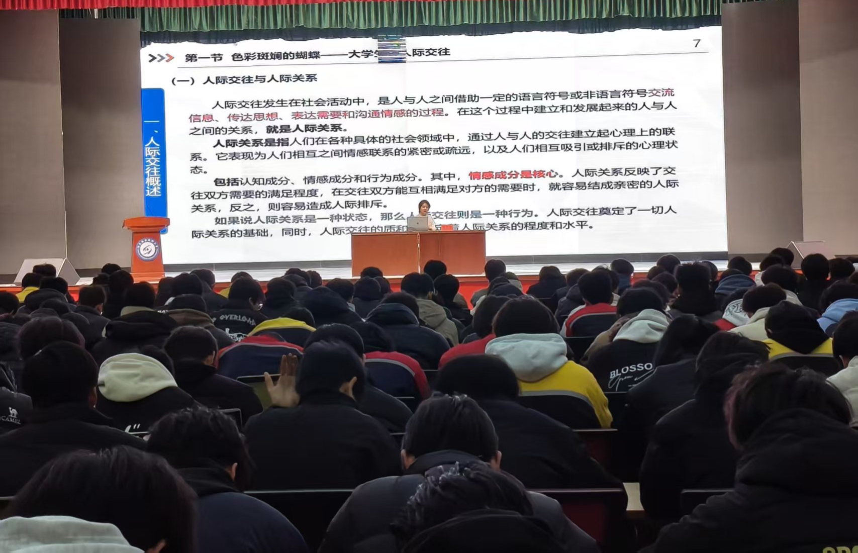 为扎实推进大学生心理健康教育工作,引导学生树立正确的人际交往观念与健康的恋爱观,提升心理调适能力,12月11日晚,学院特邀上海市第一人民医院酒泉医院(酒泉市人民医院)心身医学科党支部书记、护士长,国家二级心理咨询师张梦滢老师在胡杨文化活动中心为2025级全体学生举办了一场题为“人际交往与恋爱心理”的专题心理健康讲座。