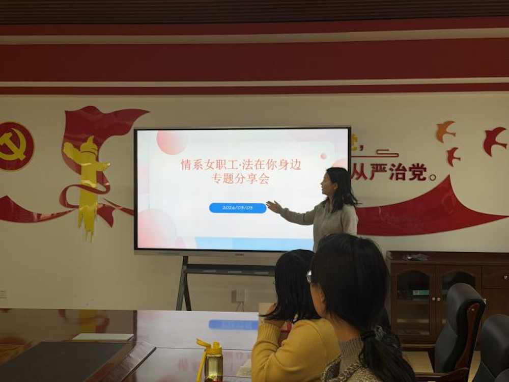 分享会聚焦女职工权益保护核心,内容务实精准。张琦围绕《中华人民共和国妇女权益保障法》,重点讲解了女职工孕期、产期、哺乳期特殊劳动保护,以及平等就业、薪酬保障、职场反性骚扰等与日常工作生活紧密相关的内容,梳理了专属保障条款,帮助教职工全面把握维权要点。
