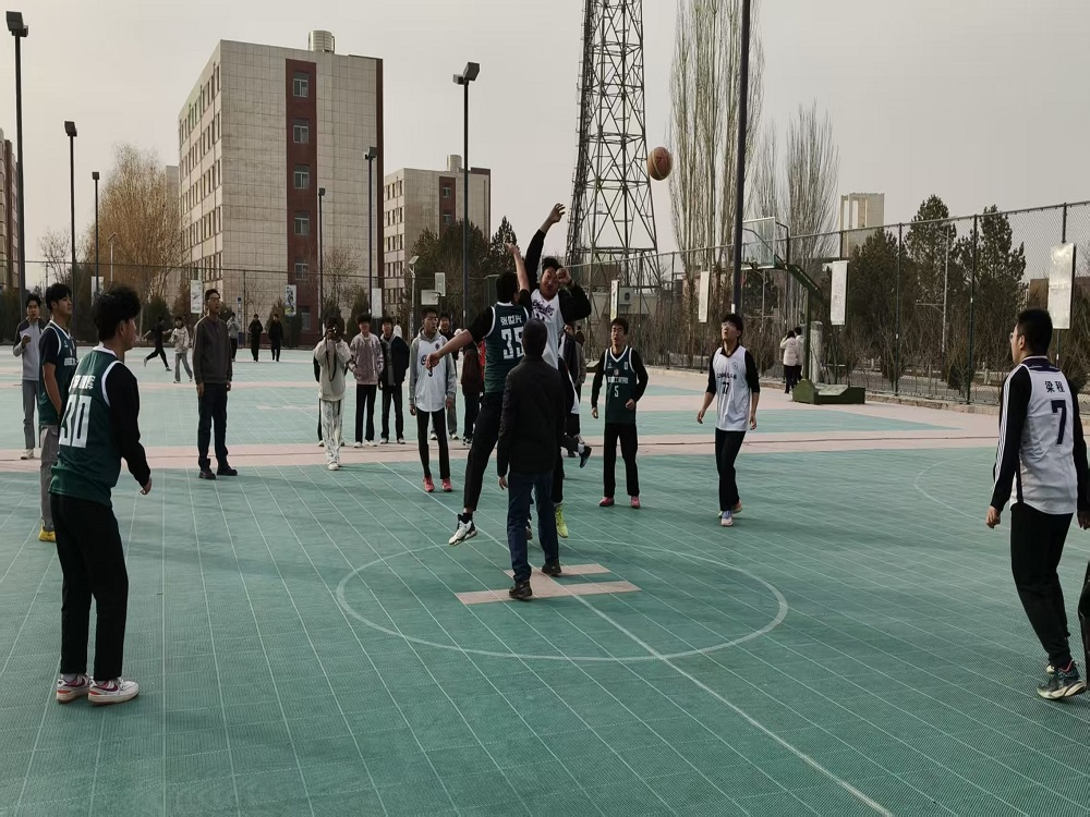 开幕式后,篮球联赛首场比赛即刻开赛,球员奋勇拼搏,赛场氛围热烈,尽显新能源学子青春风采。