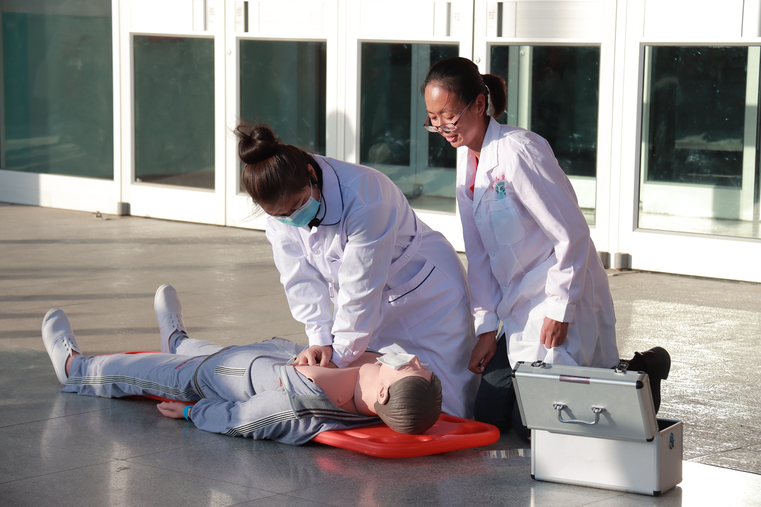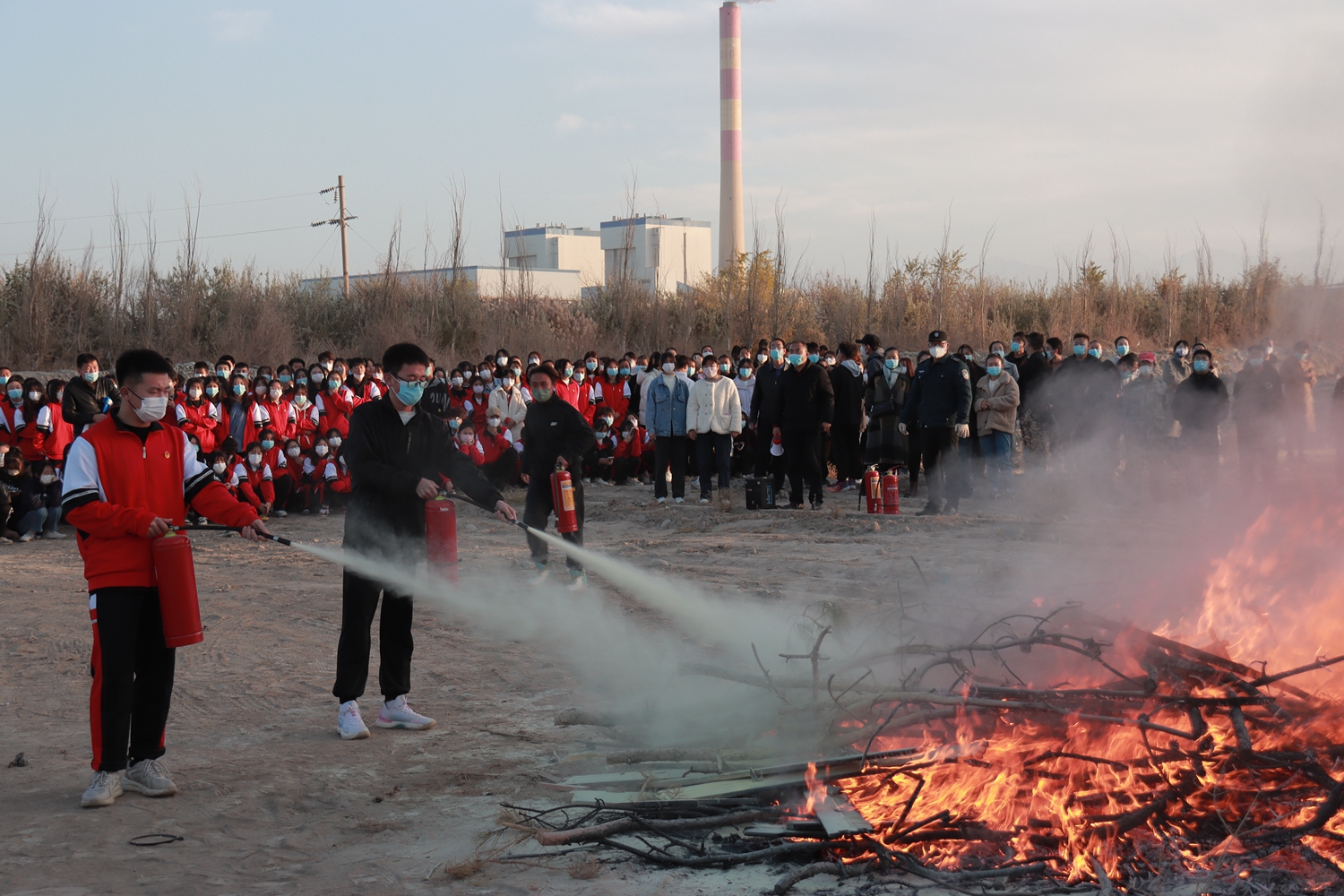 演练场景模拟学生上课时突发火情,学生在任课教师的指挥下按照就近原则从各安全出口迅速有序疏散至预定地点集合,清点人数,报备受伤情况,并对受伤人员进行紧急医疗救助。应急疏散演练结束后,相关人员详细讲解和演示了灭火器的使用方法和操作步骤,并让师生亲自体验如何正确使用灭火器进行灭火。
