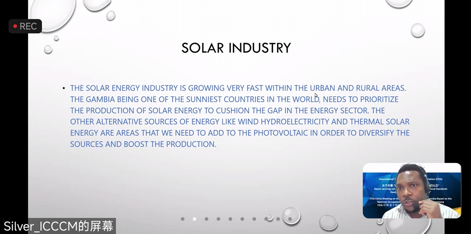 会上,冈比亚教育部代表以国家职业标准发展为基础,讲解项目分组分类以及冈比亚当地行业相关情况。
