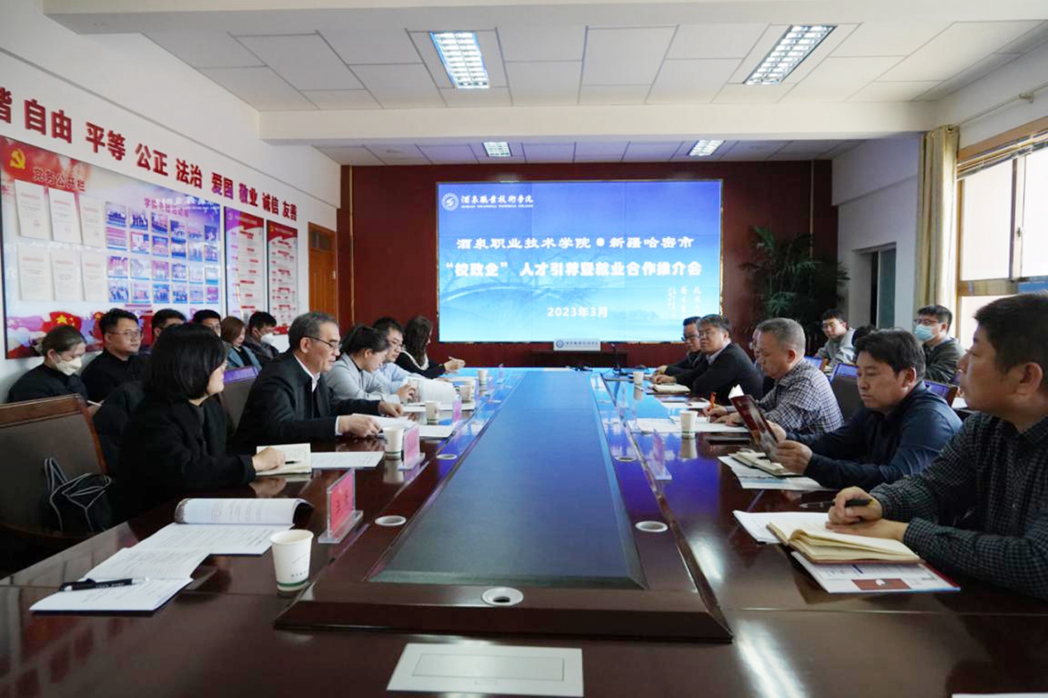 为更好的搭建政府、学校、企业交流平台,实现产学研深度融合,学校特邀请新疆哈密市政府和企业代表来校交流。3月1日上午,新疆哈密市委组织部副部长、人社局党组副书记、局长钟锐钧等一行9人,新疆哈密市优质企业代表34人来我校,在行知楼四楼会议室举行了“校政企”人才引荐暨就业合作推介会。学校党委委员、副校长王立智出席座谈会并讲话,招生就业处负责人以及各二级学院主管院领导参加了会议。会议由王立智主持。