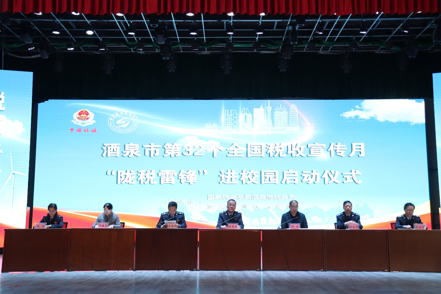 3月31日,酒泉市税务局第32个全国税收宣传月暨“陇税雷锋”进校园启动仪式在我校举行。酒泉市税务局党委书记、局长李震宇,酒泉职业技术学院党委书记、校长易志军,党委副书记许军及酒泉市司法局、酒泉市税务局、肃州区税务局和经开区税务局相关负责人出席启动仪式。