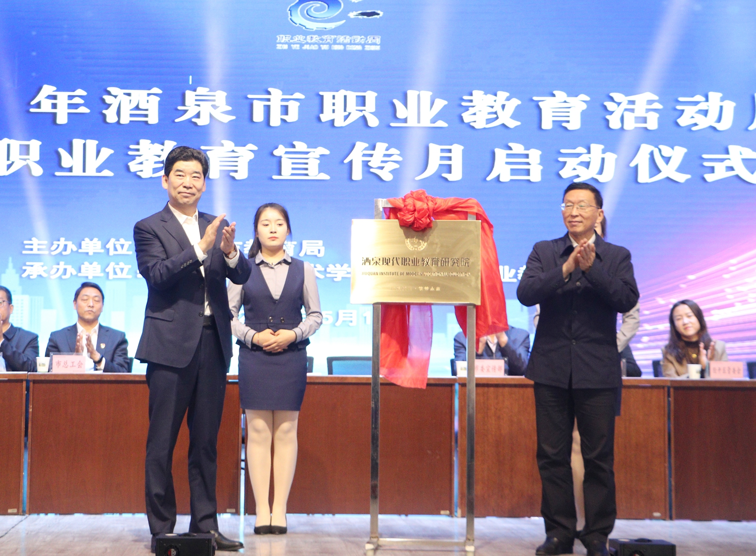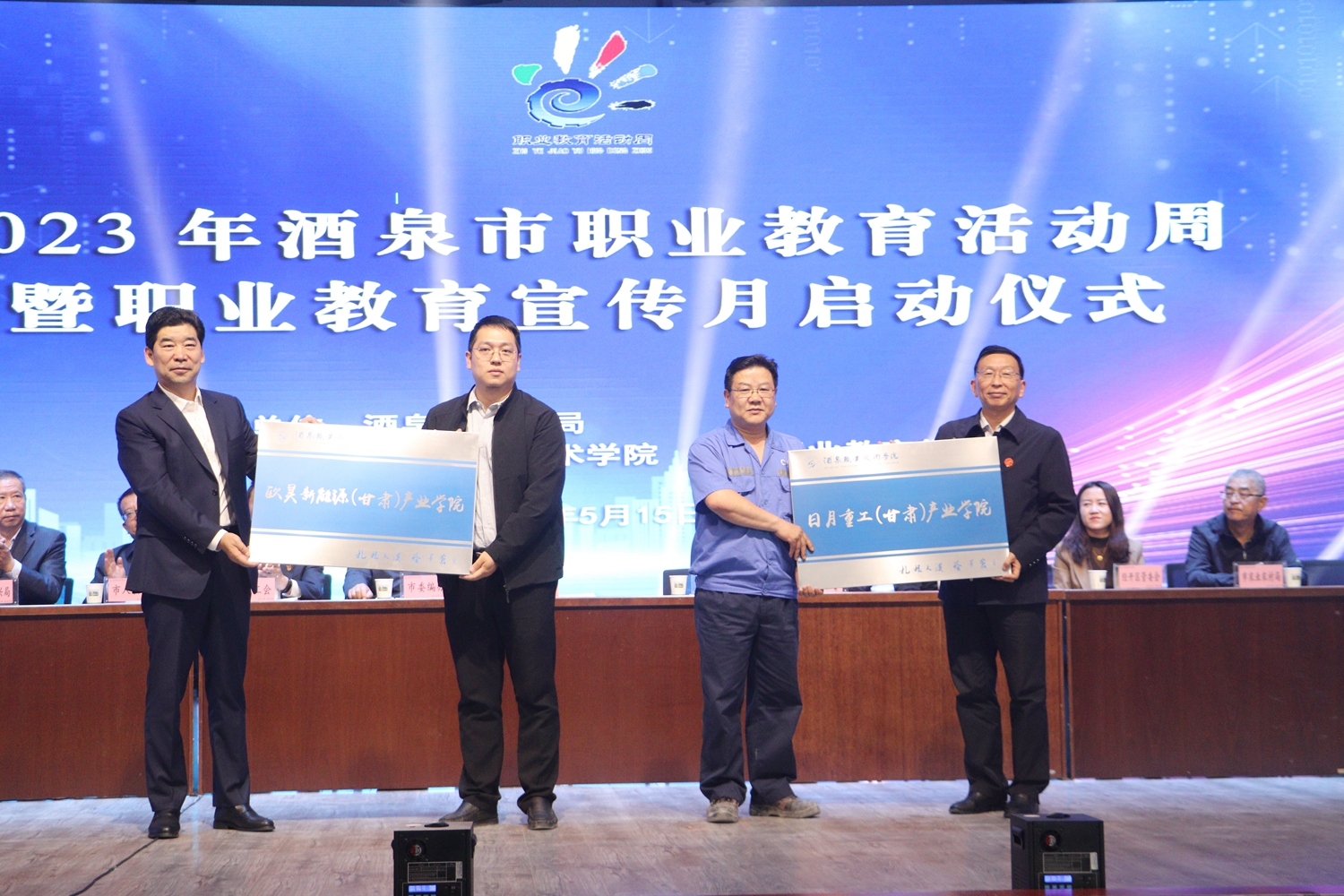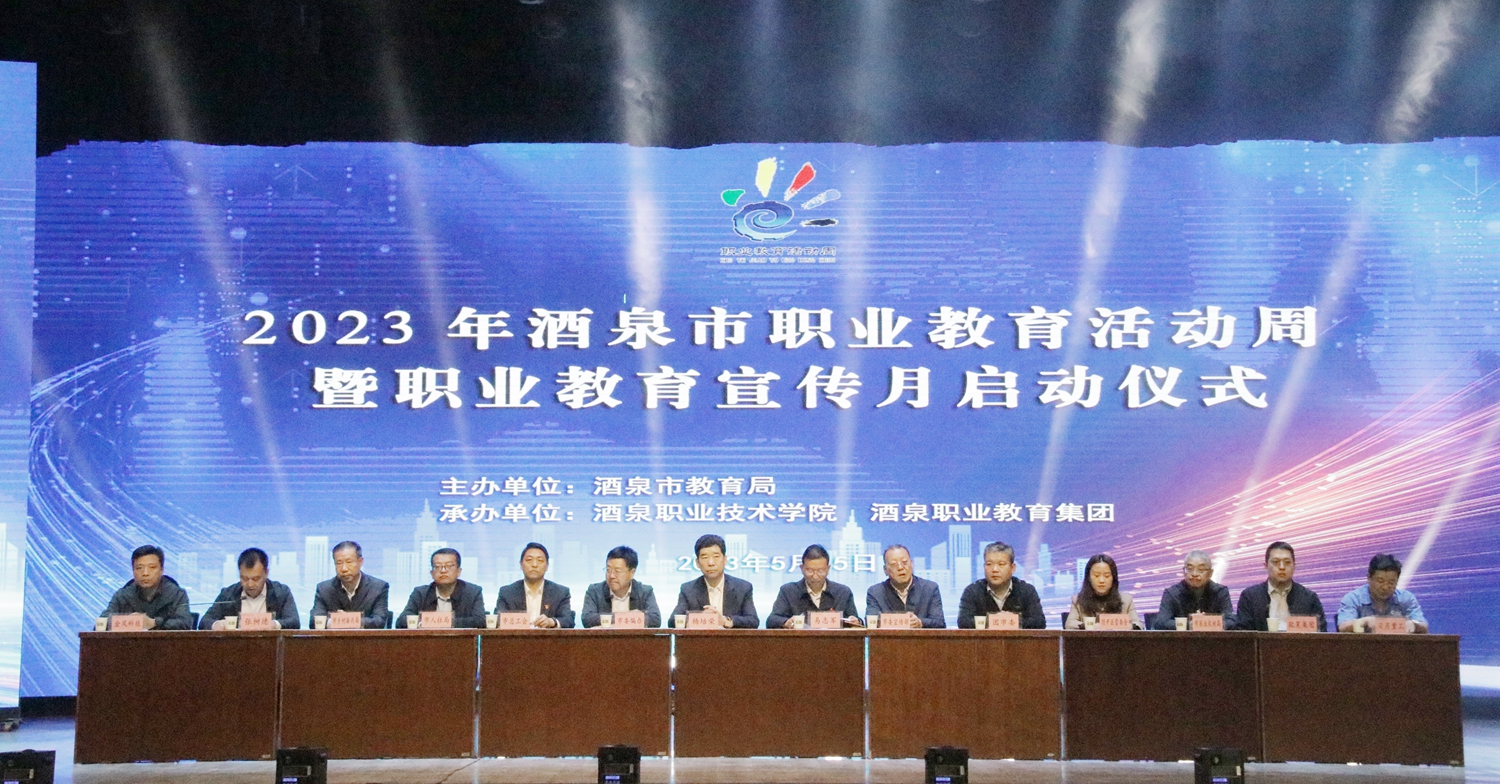要闻快递 > 正文为深入贯彻党的二十大精神,大力宣传劳模精神、劳动精神、工匠精神,弘扬劳动光荣、技能宝贵、创造伟大的时代风尚,营造全社会尊重技能、崇尚技能的良好氛围。5月15日上午,由市教育局主办,酒泉职业技术学院、酒泉职业教育集团承办的2023年酒泉市职业教育活动周暨职业教育宣传月活动启动仪式在酒泉职业技术学院举办。市委教育工委书记、市教育局党组书记、局长杨培荣,酒泉职业技术学院党委书记、校长易志军以及市委宣传部、市委编办、市总工会、团市委、市人社局、市工信局、市农业农村局、市乡村振兴局、酒泉经开区管委会等相关部门领导和相关企业负责人参加启动仪式。市教育局党组成员、副局长张树德主持仪式。