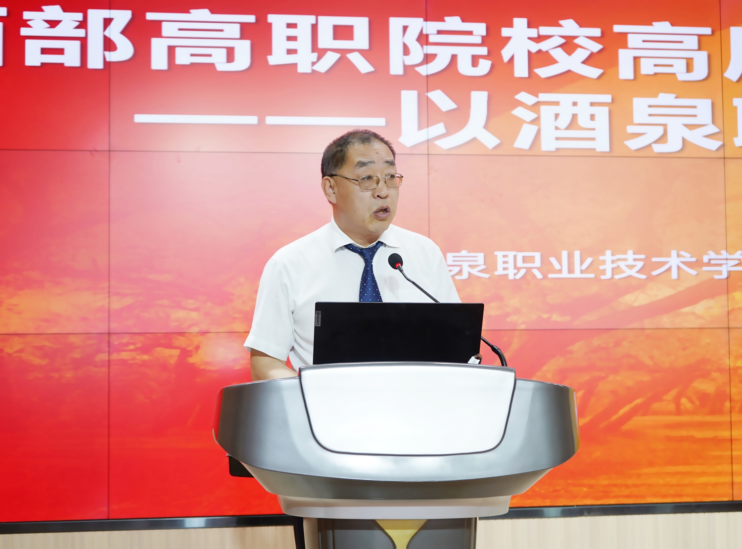 下午,2023年酒泉市职业教育活动周暨职业教育宣传活动月论坛在酒泉职业技术学院举办。12所职业院校代表分别围绕《西部高职院校高质量发展的探索与实践--以酒泉职业技术学院为例》《党建引领下的“456”职教德育工作实践》《推进普职特色化融合、助力学生多样化成才》《强化“三全育人”,深化“三教”改革,提质培优、增值赋能》等主题进行了交流发言。