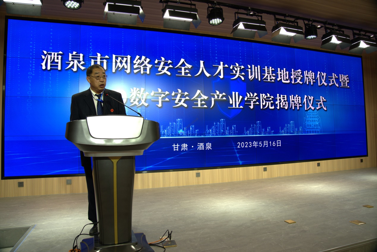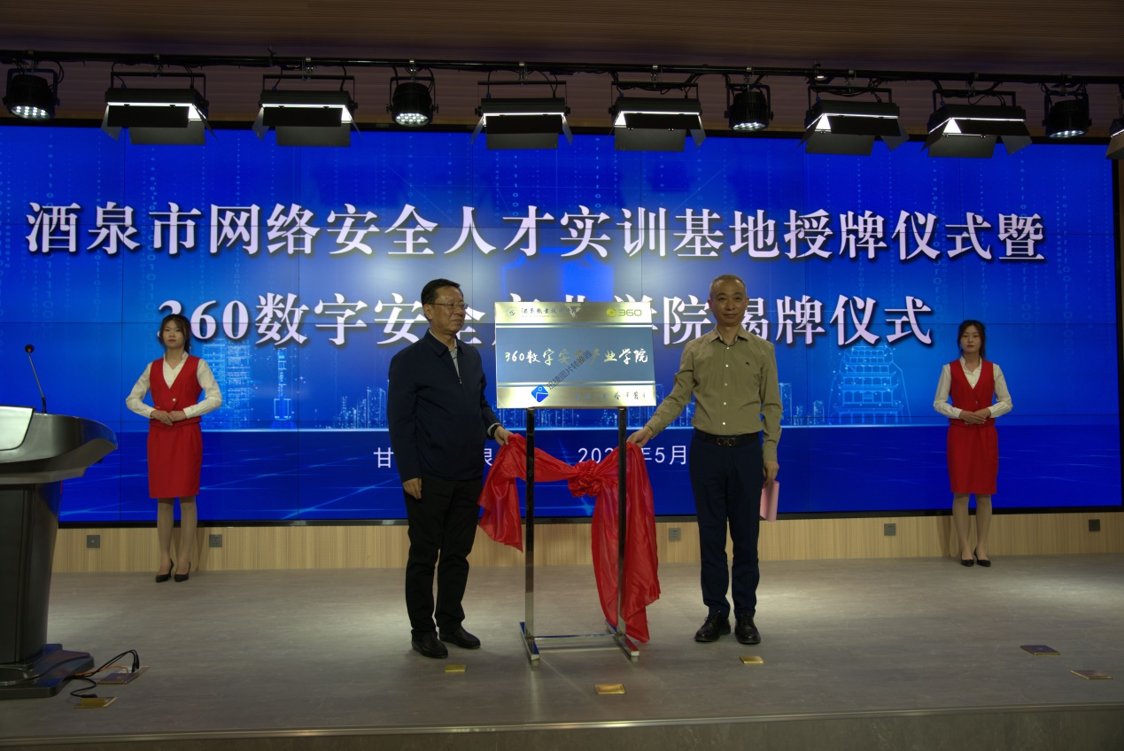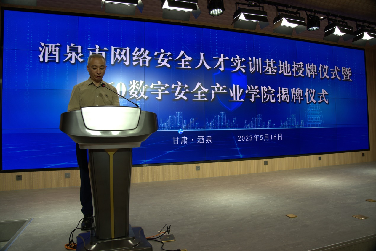 要闻快递 > 正文5月16日,酒泉市网络安全人才实训基地授牌仪式暨360数字安全产业学院揭牌仪式在酒泉职业技术学院弘毅楼C座报告厅隆重举行。酒泉市人大常委会主任李永军,360数字安全集团高级副总裁李博、区域总经理李铁牛、解决方案经理郭大伟等360企业相关负责人,市委组织部、市委网信办、市发改委、市教育局、市科技局、市工信局、市公安局、市人社局、市大数据局负责同志参加活动;活动由市委网信办主任、市委宣传部副部长(兼)、市互联网信息办主任(兼)马慧君同志主持,酒泉职业技术学院党委副书记许军教授及电子与信息工程学院相关负责人参加活动。