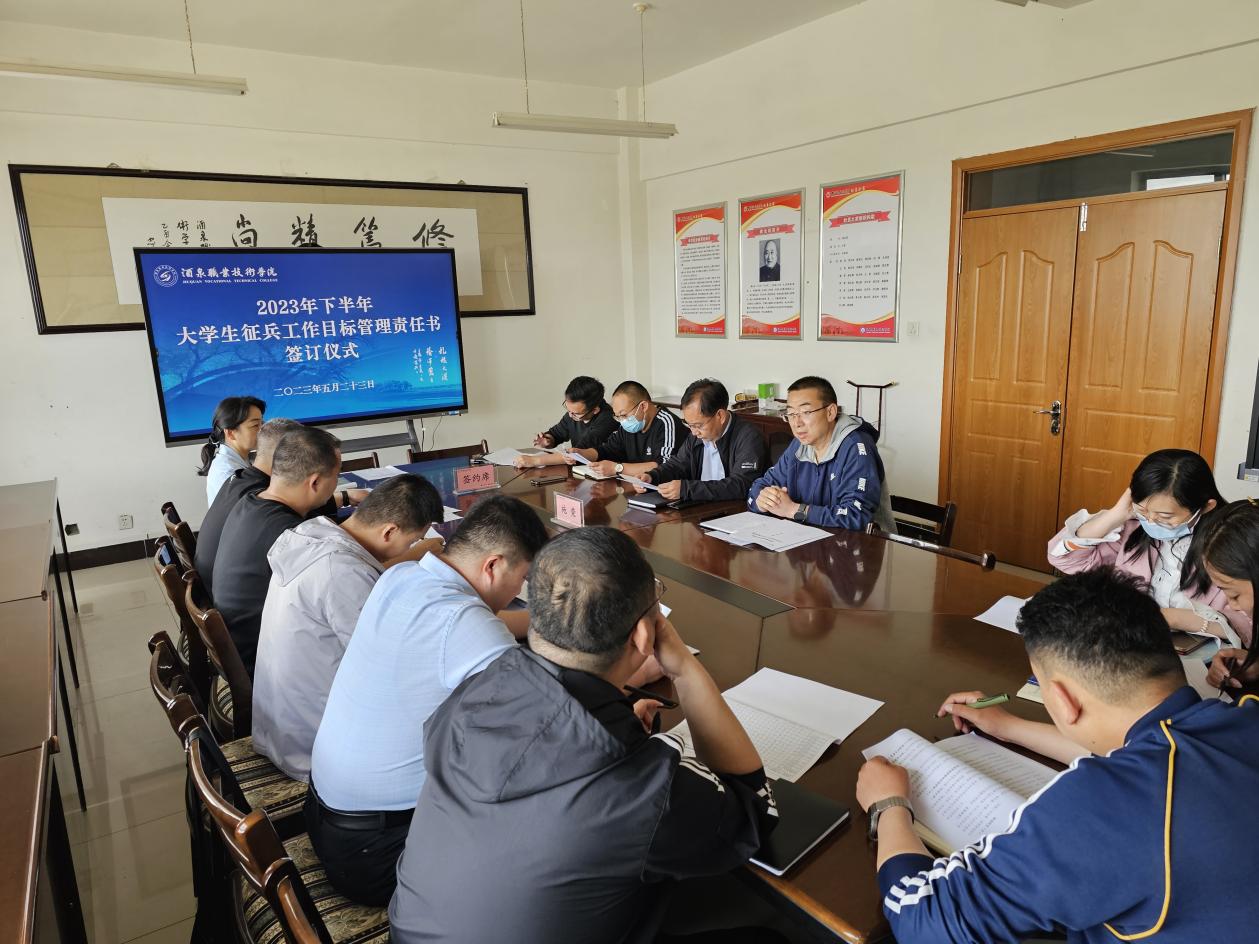 为明确2023年下半年学校征兵目标,落实工作任务,5月23日上午,学校举行2023年下半年大学生征兵工作目标管理责任书签订仪式,学生工作部部长、学生处处长、征兵工作站长刘全明主持签订仪式,学校党委委员、副校长施荣出席签订仪式并讲话,各二级学院主管学生工作副院长参加。