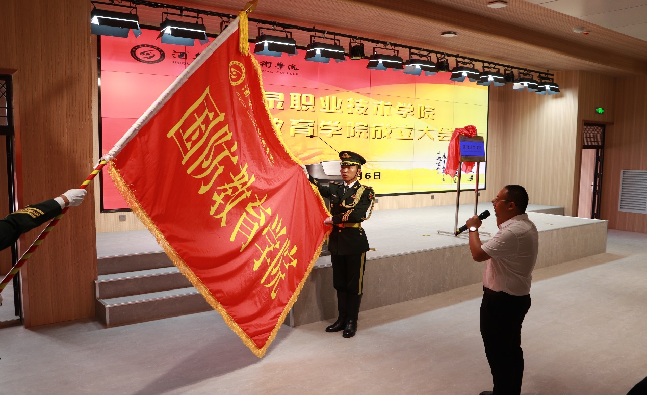大会在雄壮的国歌声中拉开序幕。党委委员、副校长施荣宣读了成立“国防教育学院”的通知,党委副书记许军为国防教育学院揭牌并授旗,学生工作部部长刘全明宣读了国防教育学院任命决定。