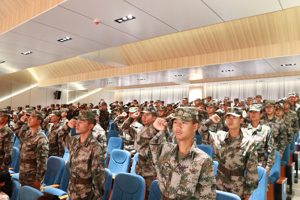 学生处副处长刘明带领国防社团学员进行了庄严宣誓,一句句铿锵有力的誓词,代表的是全体国防社团学员献身国防的信心与决心。