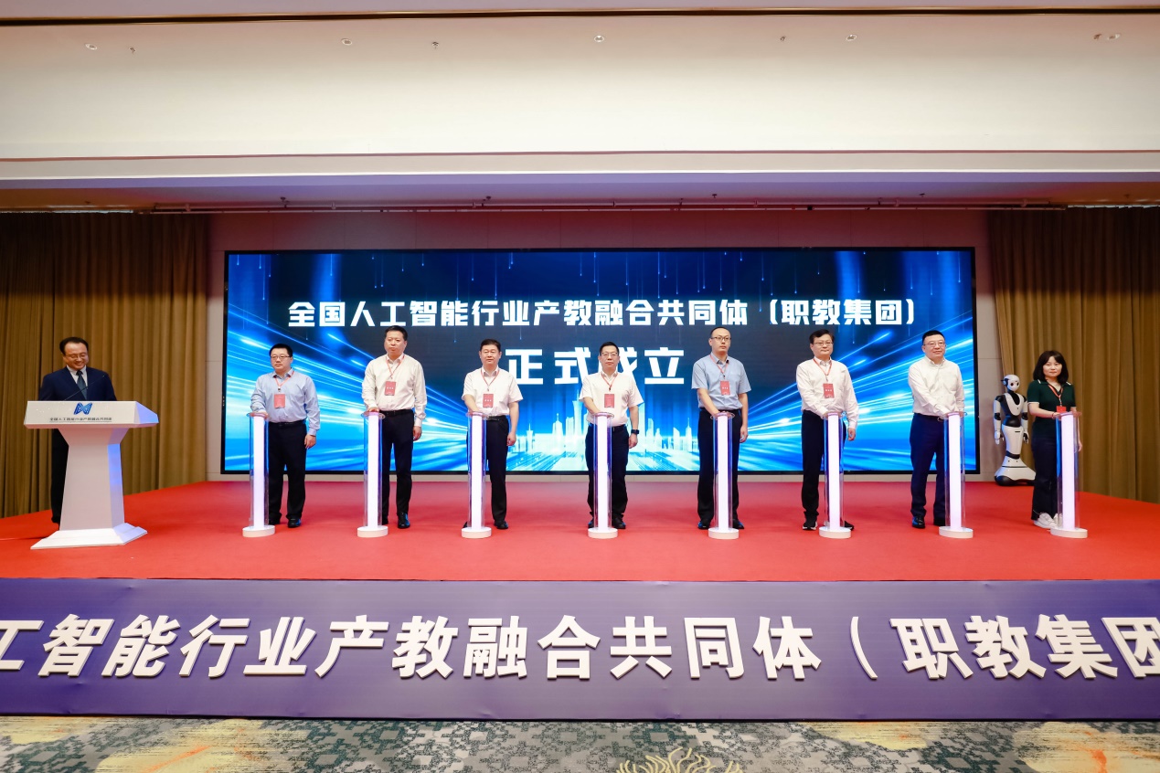 要闻快递 > 正文8月12至13日,由工业和信息化部教育与考试中心指导,百度(中国)有限公司、山东大学、东营职业学院主办的全国人工智能行业产教融合共同体(职教集团)成立大会在山东东营成功召开。工业和信息化部教育与考试中心主任郝志强、教育部职业教育与成人教育司院校发展处主任王宁、山东省教育厅副厅长张志刚、东营市人民政府副市长孙永、山东大学软件学院副院长刘士军、百度(中国)有限公司ACG教育行业解决方案总监戴海竹,东营职业学院党委书记杜振波出席会议并致辞。我校被推选为全国人工智能行业产教融合共同体(职教集团)常务副理事长单位,学校党委副书记许军当选为常务副理事长。
