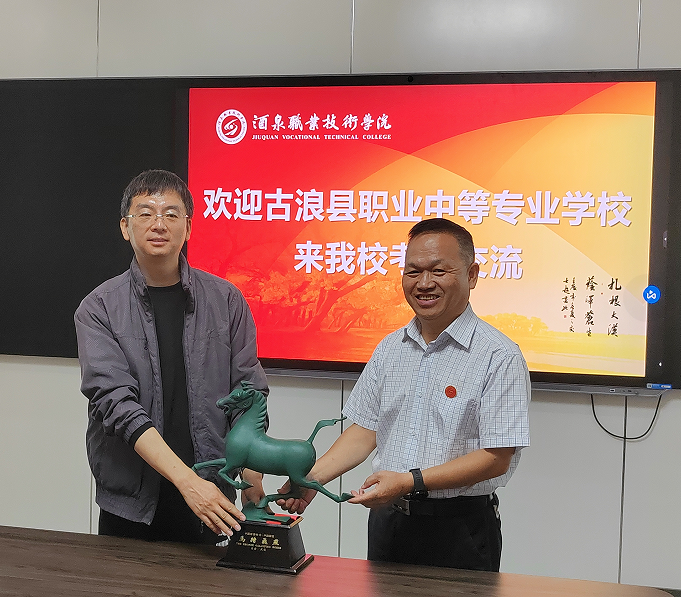 会后,刘宇校长受该校校党总支书记王伯荣委托,赠与我校“马踏飞燕”纪念品。(信息员:招生就业处 张辉)