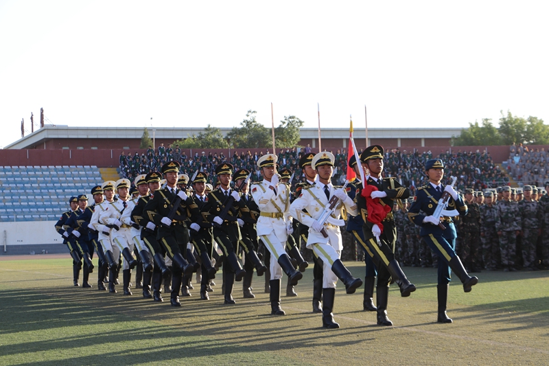 党委书记、校长易志军向军训帮训教官所在部队西部战区96111部队赠送锦旗,表达了对承训教官衷心的感谢和诚挚的敬意。