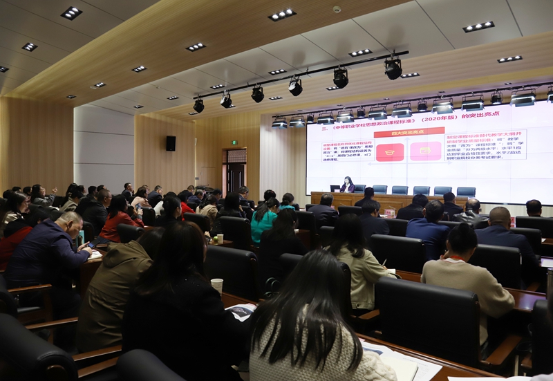开班仪式后,张建华以《基于核心素养培育的中职思政课教学改革》为题,围绕中职思政课程改革的总体思路、正确处理新课改与前几轮中职德育课程改革的关系、《中等职业学校思想政治课程标准》(2020年版)的突出亮点及中职思政课教学改革实践与认识等方面作了主旨报告。