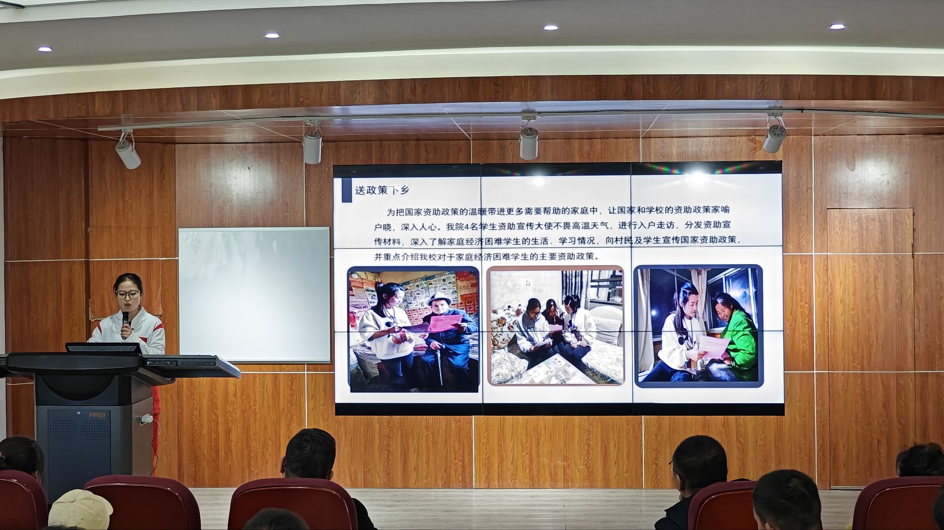 今年6月学校聘任了55名获得国家奖助学金的同学担任学校“资助宣传大使”,他们利用暑假时间,到家乡、到母校“现身说法”,宣传国家及学校资助政策,传递党的关怀和温暖,向父老乡亲、学弟学妹们介绍自己在资助政策帮助下如何安心学习、健康成长的经历,让更多经济困难家庭的家长、学子看到了就学的盈盈亮光。
