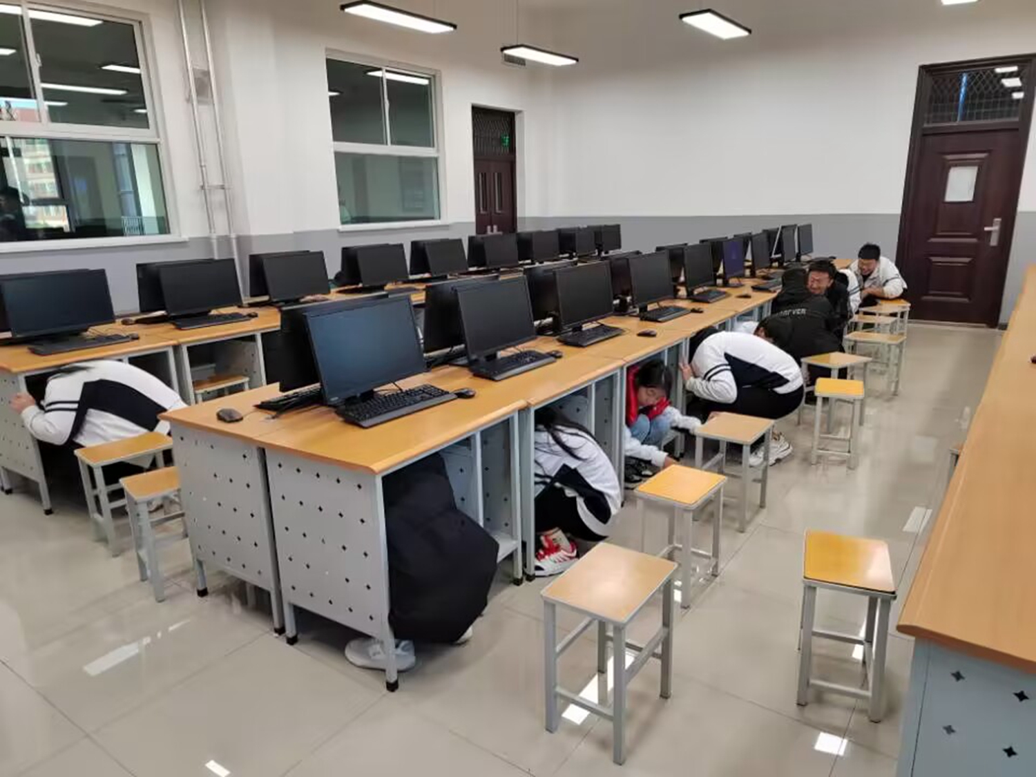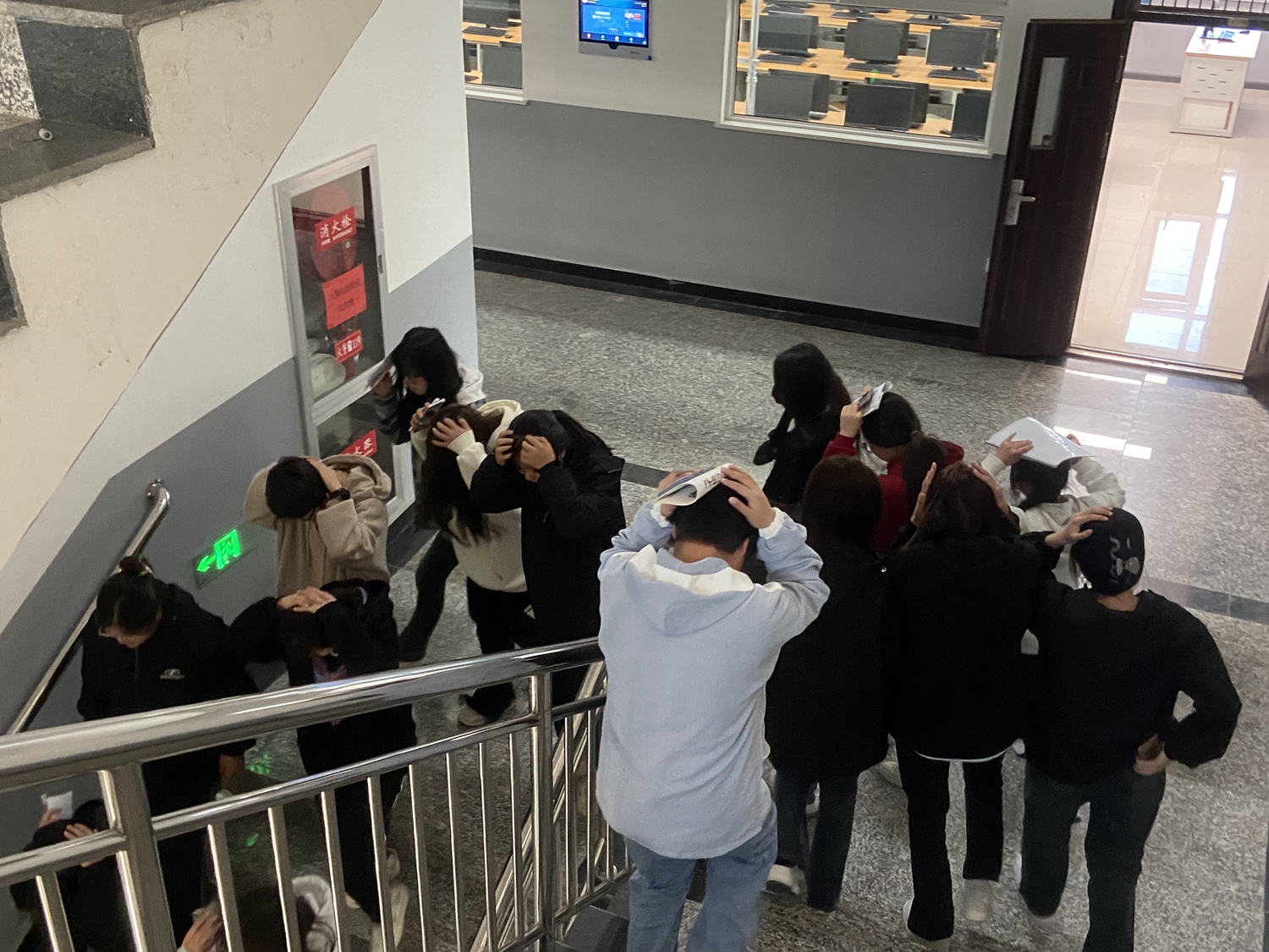 活动开始前,老师结合《地震应急疏散演练须知》、防震减灾,科普先行课件对全体学生开展避震防灾自救培训,17:30,随着警报声的响起,正在各教学楼宇、实验实训室、图书馆、宿舍、体育场内学生在老师的组织下,迅速在安全位置进行躲避防护,,待“险情”暂时平稳,师生有序撤离集结到校内安全地带,各学院迅速组织班主任清点人数,模拟受伤人员进行紧急救护,全校师生做到了全程确保安全无意外。