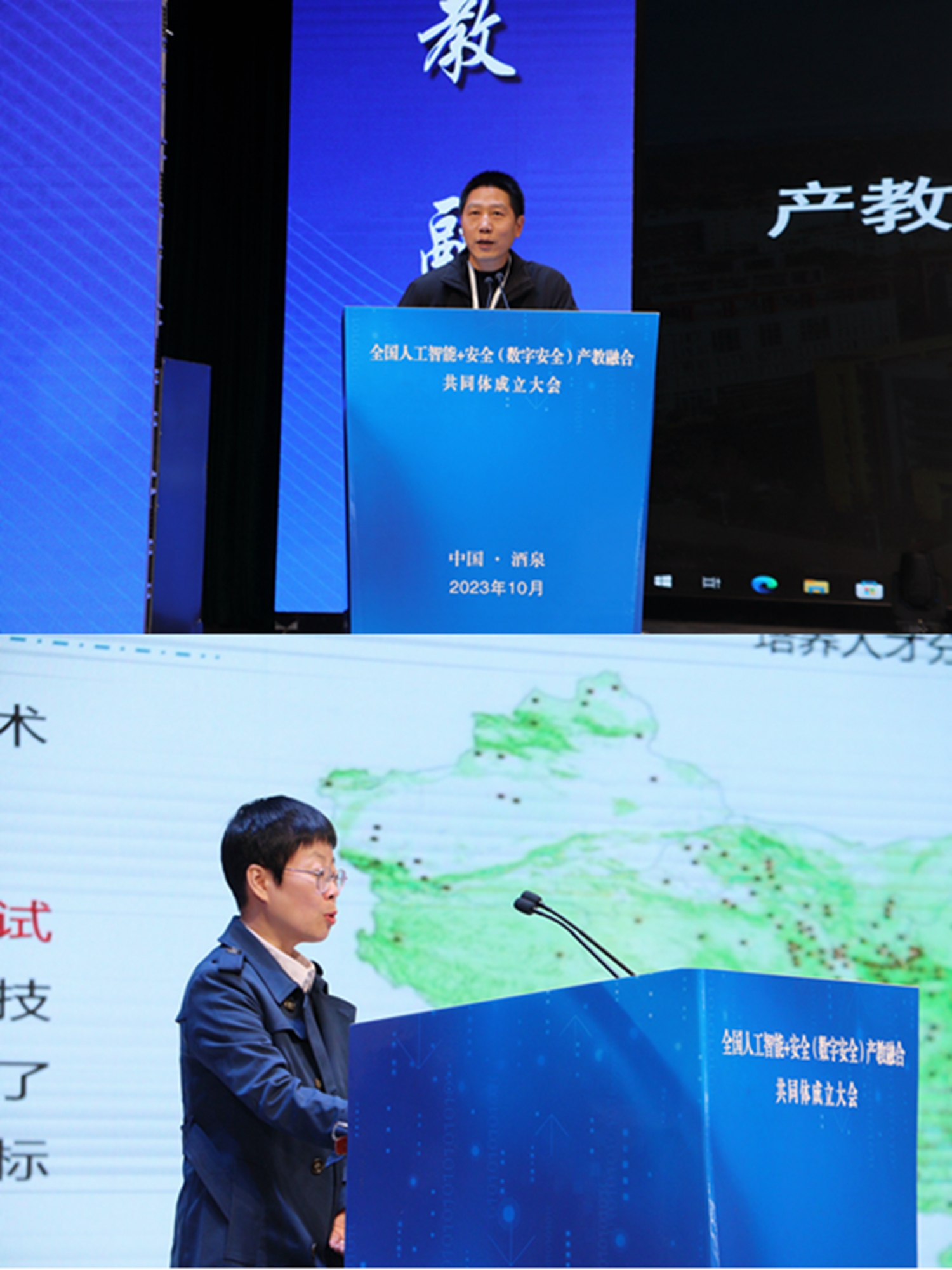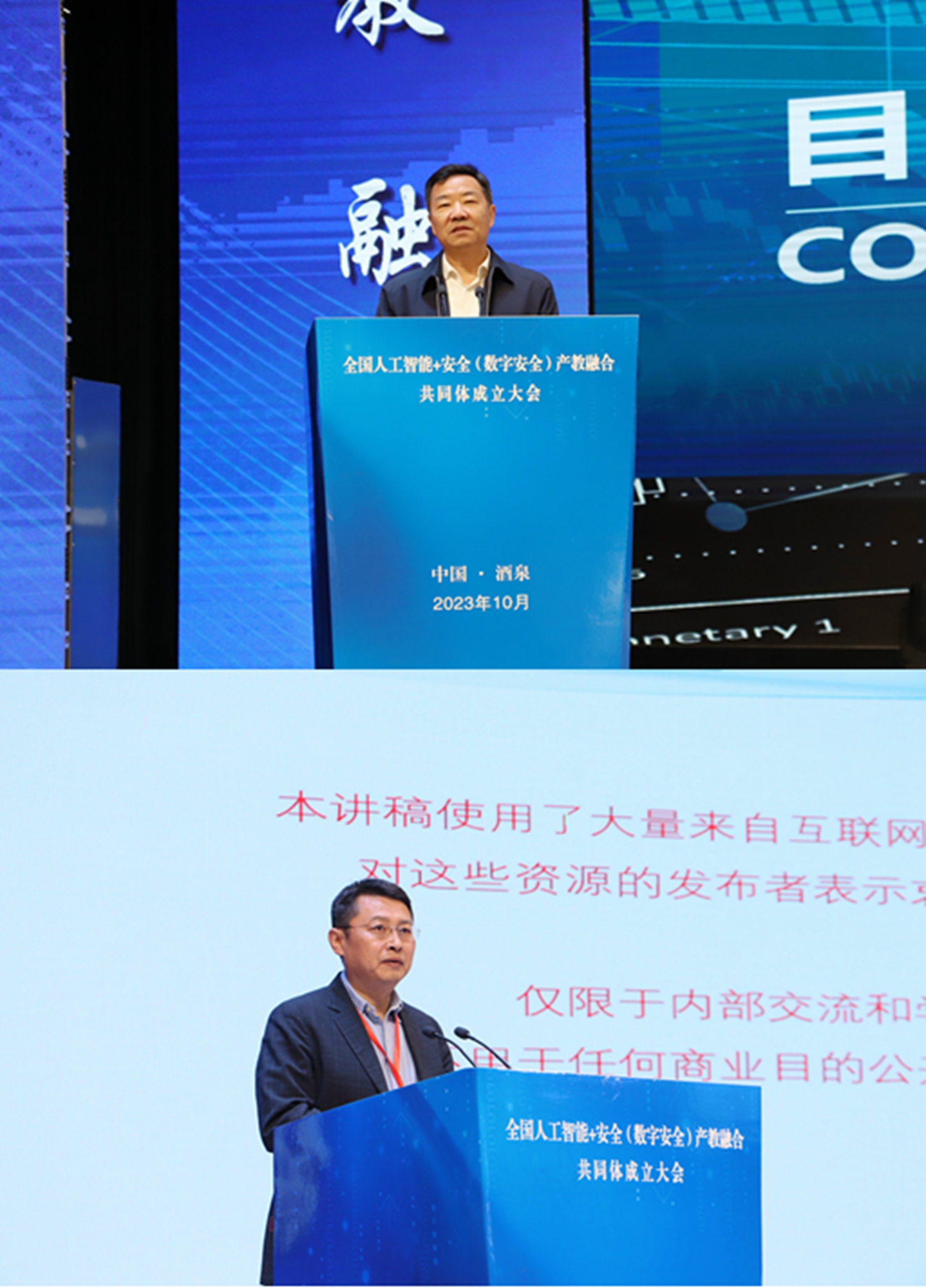 全国人工智能+安全(数字安全)产教融合共同体启动。为副理事长单位、常务副理事长单位和轮值理事长单位进行了授牌。