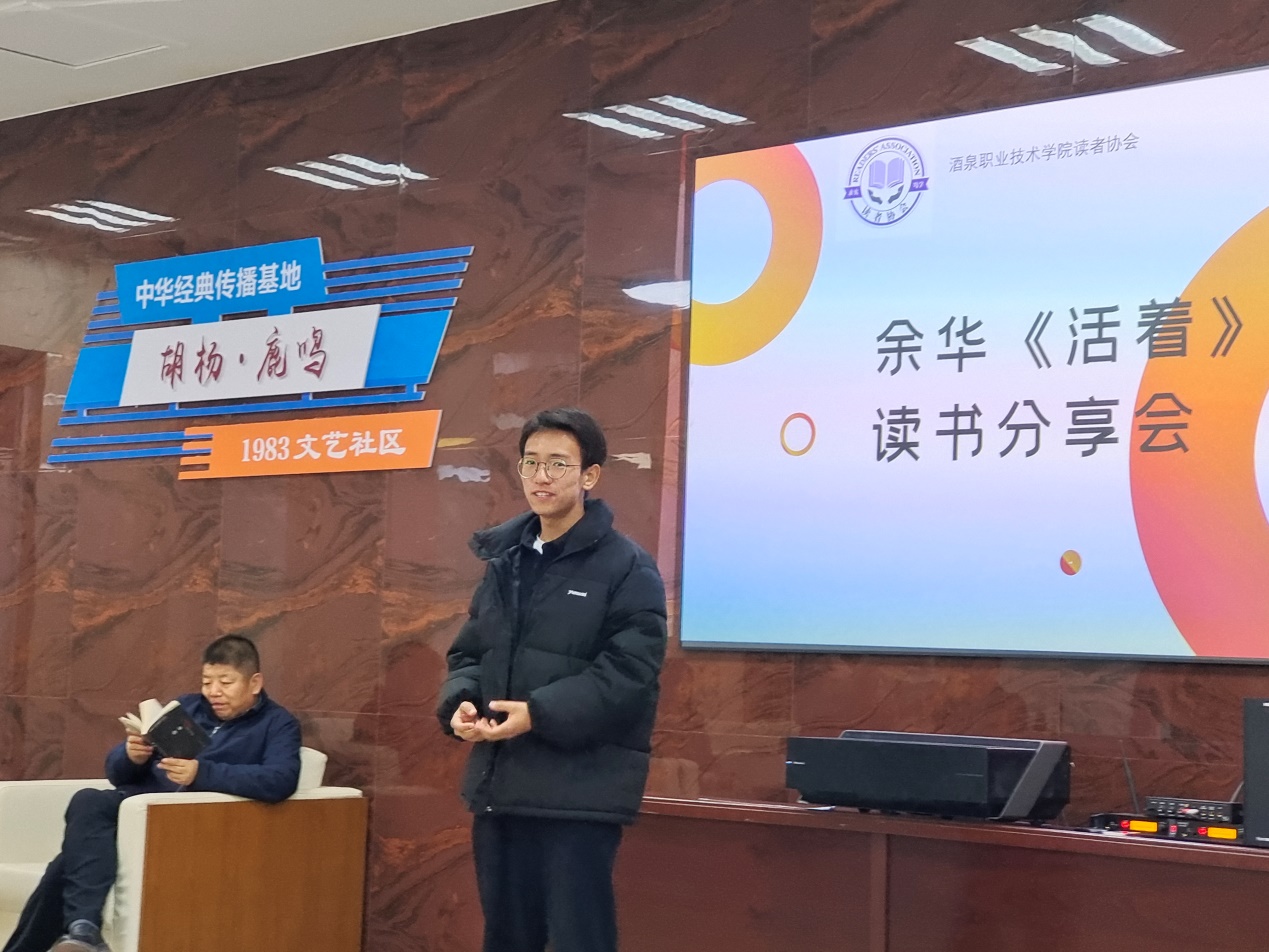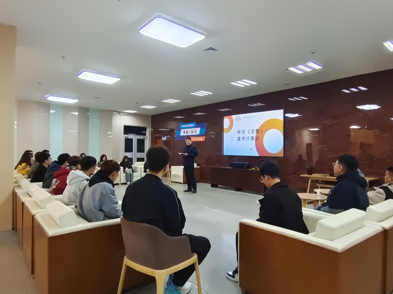 要闻快递 > 正文11月29日晚,图书馆二楼试听休闲区举办了以著名作家余华作品《活着》为主题的读书分享会。此次活动邀请了化学工程学院副教授徐军新老师与同学们共同探讨余华笔下主人公福贵的人生经历,引导学生通过阅读余华的小说《活着》,领略文学的魅力,培养良好的阅读习惯,激发对生活的热爱。